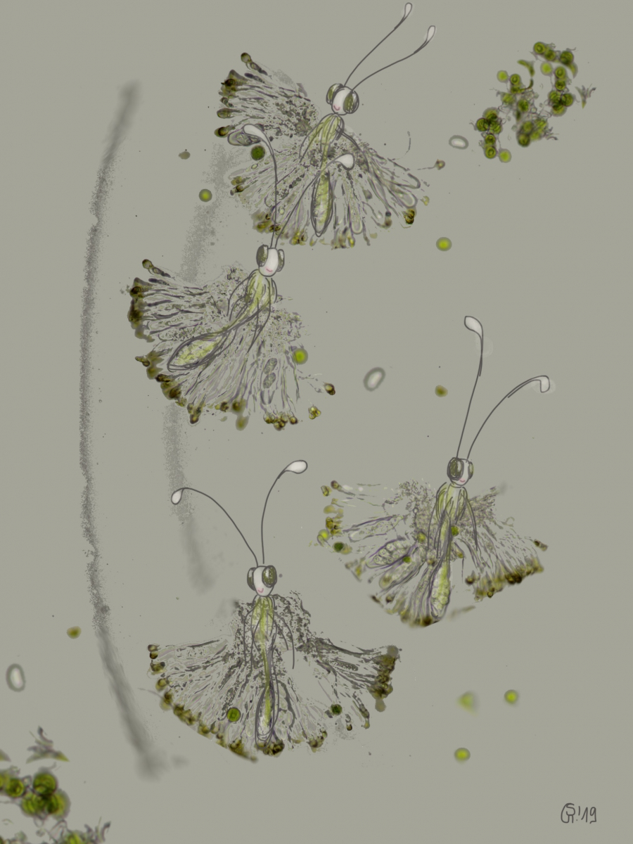 Doch in den Mikrobildern der Asci deiner Xanthoria verbargen sich ephemere kleine Wesen, die ich hier besser sichtbar gemacht habe...