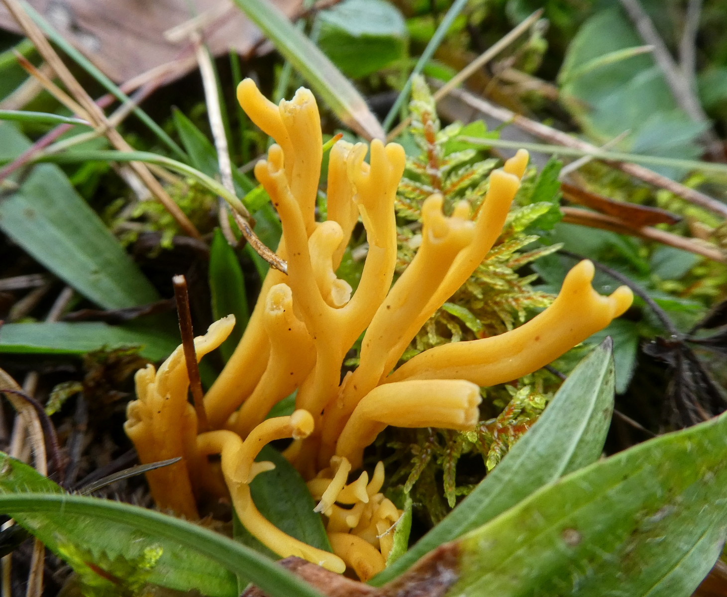 Hier denke ich an die Geweihförmige Gelbe Wiesenkeule (Clavulinopsis corniculata)