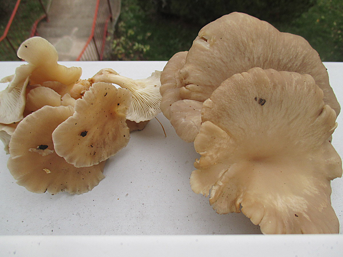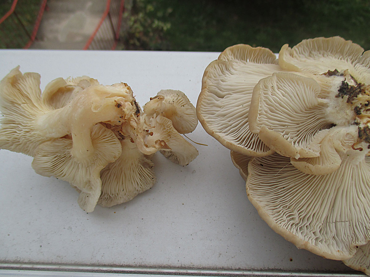 Am Nachbarstamm waren dann auch noch etwas zu hell geratene Austern zu finden. Ich habe die hier einmal zusammen mit den anderen auf der rechten Seite geknipst um den Farb- und Größenunterschied darzustellen.