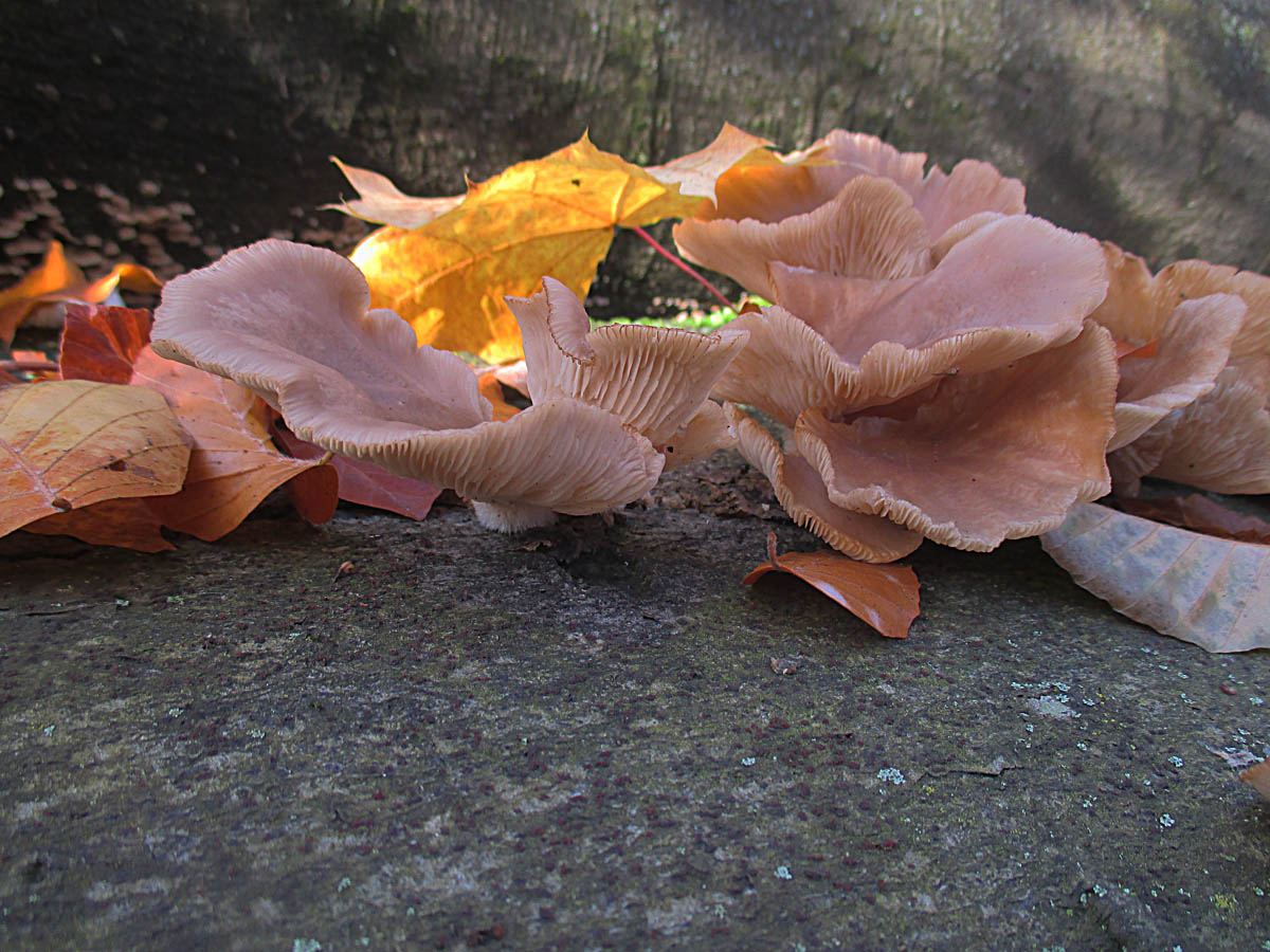 Auch sein etwas bitter schmeckende Bruder, der Gelbstielige Muschelseitling lies sich blicken.