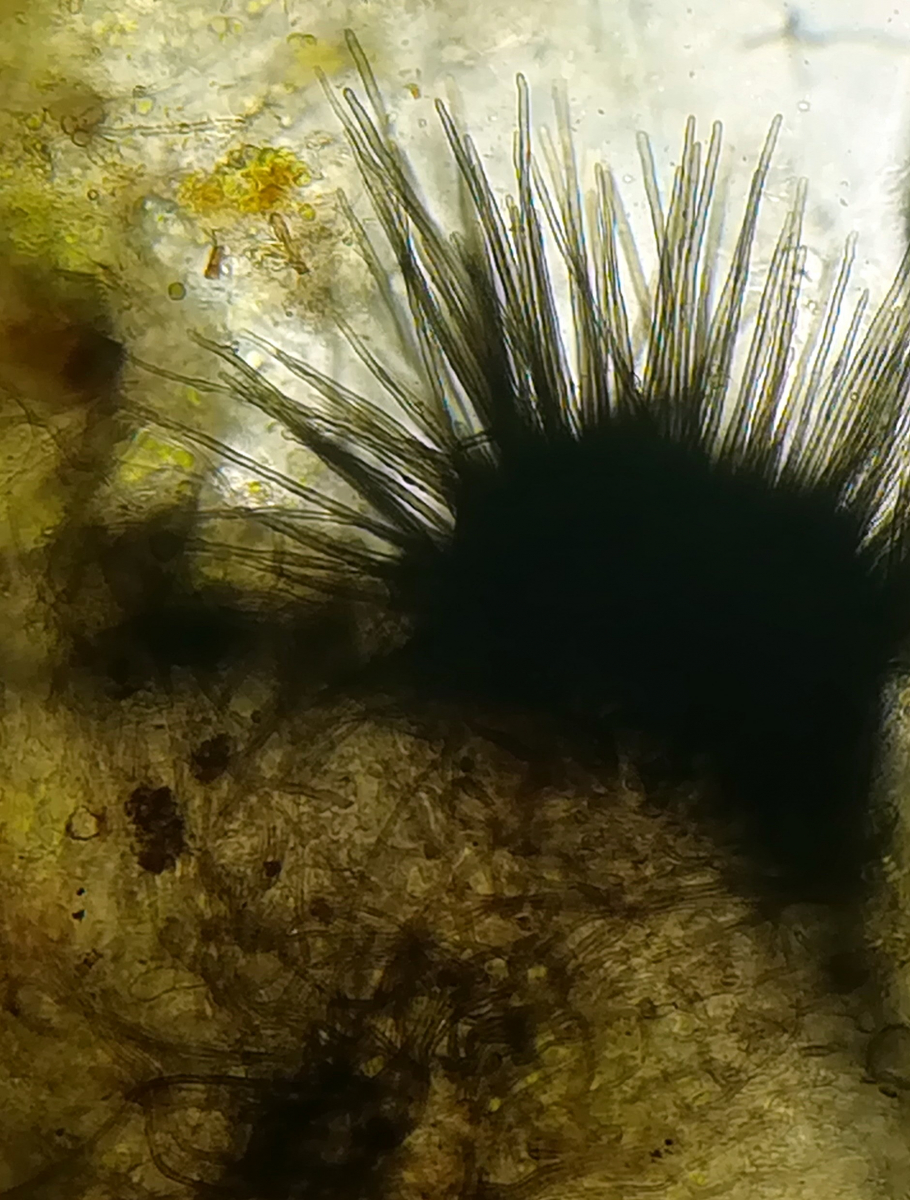Perithecienhals mit starren, apikal abgerundeten Haaren, zusätzlich Hyphengeflecht vorhanden