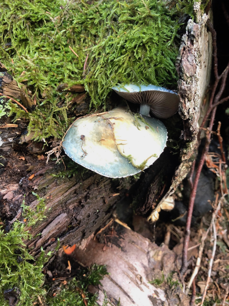 Eine frostige Säufernase - hier der Stachelbeertäubling, der eindeutig Monate zu spät dran ist. Die Stachelbeer-Saison ist seit August vorbei. Das verwirrte uns so sehr, dass wir uns schleunigst auf den Rückweg begaben. Der Nebel verdichtete sich zusehends und die Sonne war verschwunden.
