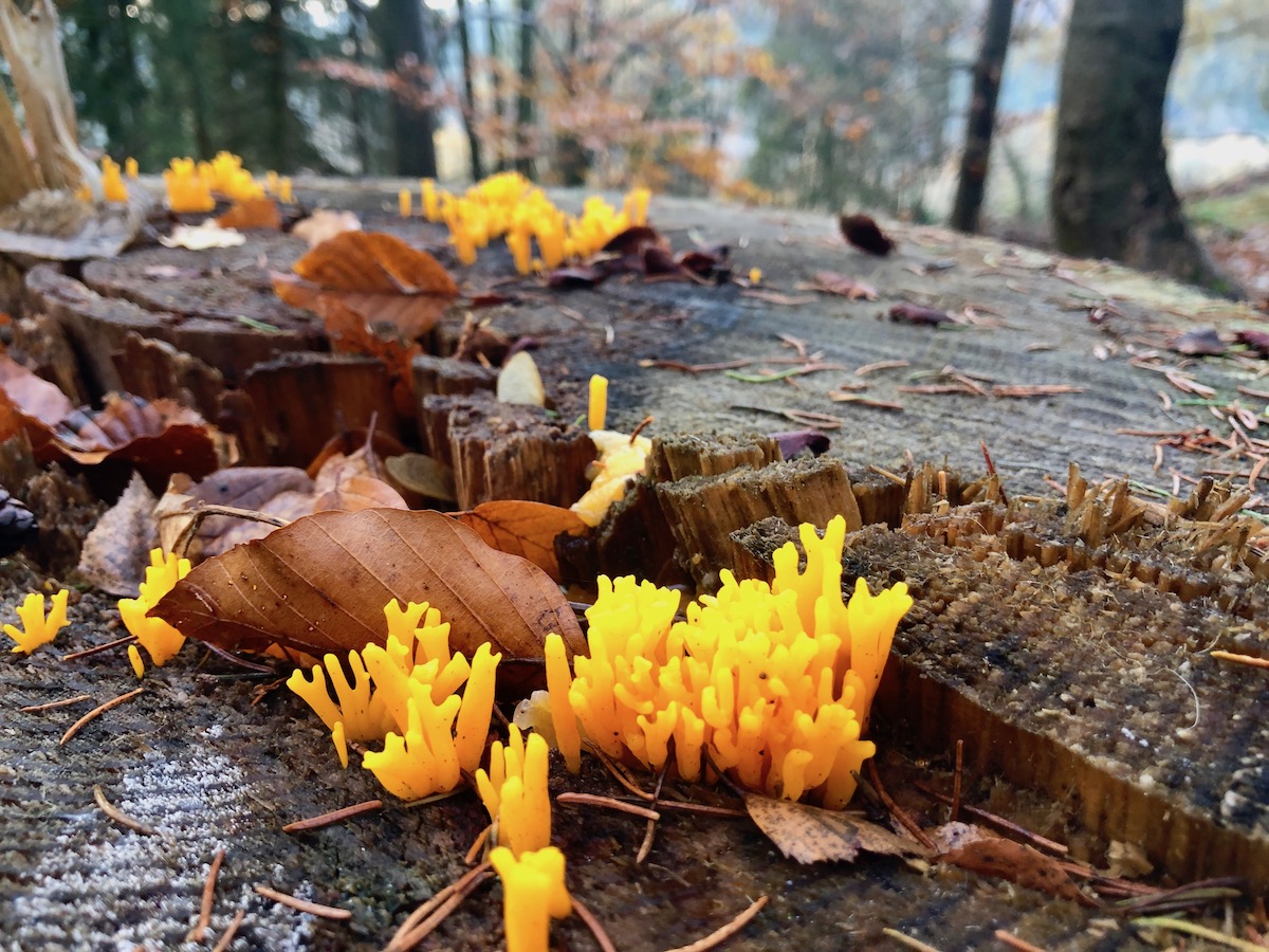 bei Null Grad haben wir das neblige Tal verlassen und ein bisschen Sonne genossen - und natürlich die Pilze, die sich in teilweise in schicke Reifmäntel oder Eiskrusten gehüllt hatten.