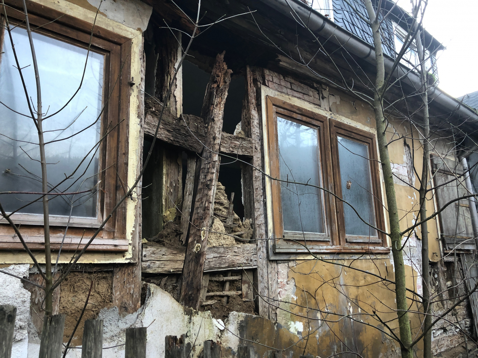 Die ersten Pilze ließen nicht auf sich warten - man beachte den Balken-Bildmitte==Gnolm7. Es ist nicht die einzige Ruine, die hier ihre Pilzsporen in der Gegend verteilt.