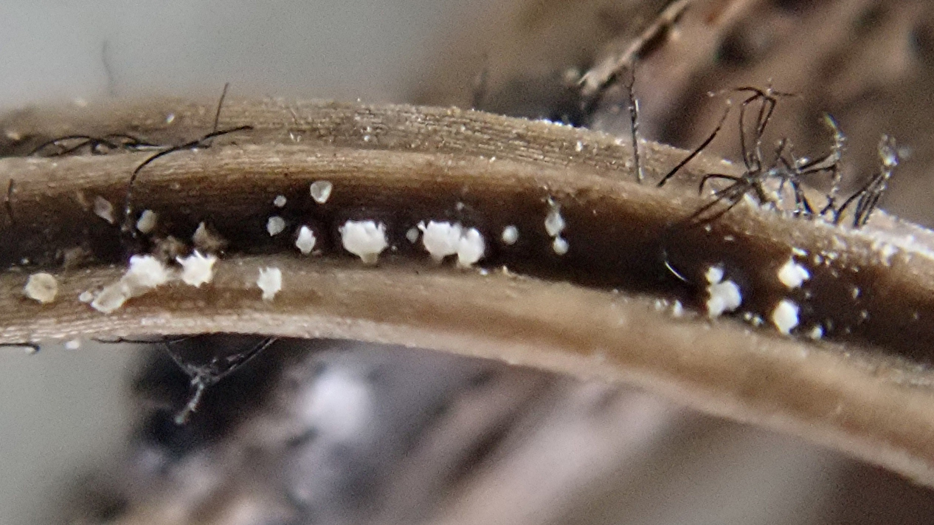 An einem Holzstück, das bei den Nadeln dabei war, war übrigens noch ein weiteres Becherchen dran, das war aber schon recht kaputt, etwas größer als die Cistellas. Durch die Randhaare war das aber unschwer als Olla transiens zu bestimmen, hab das aber nicht fotografiert.