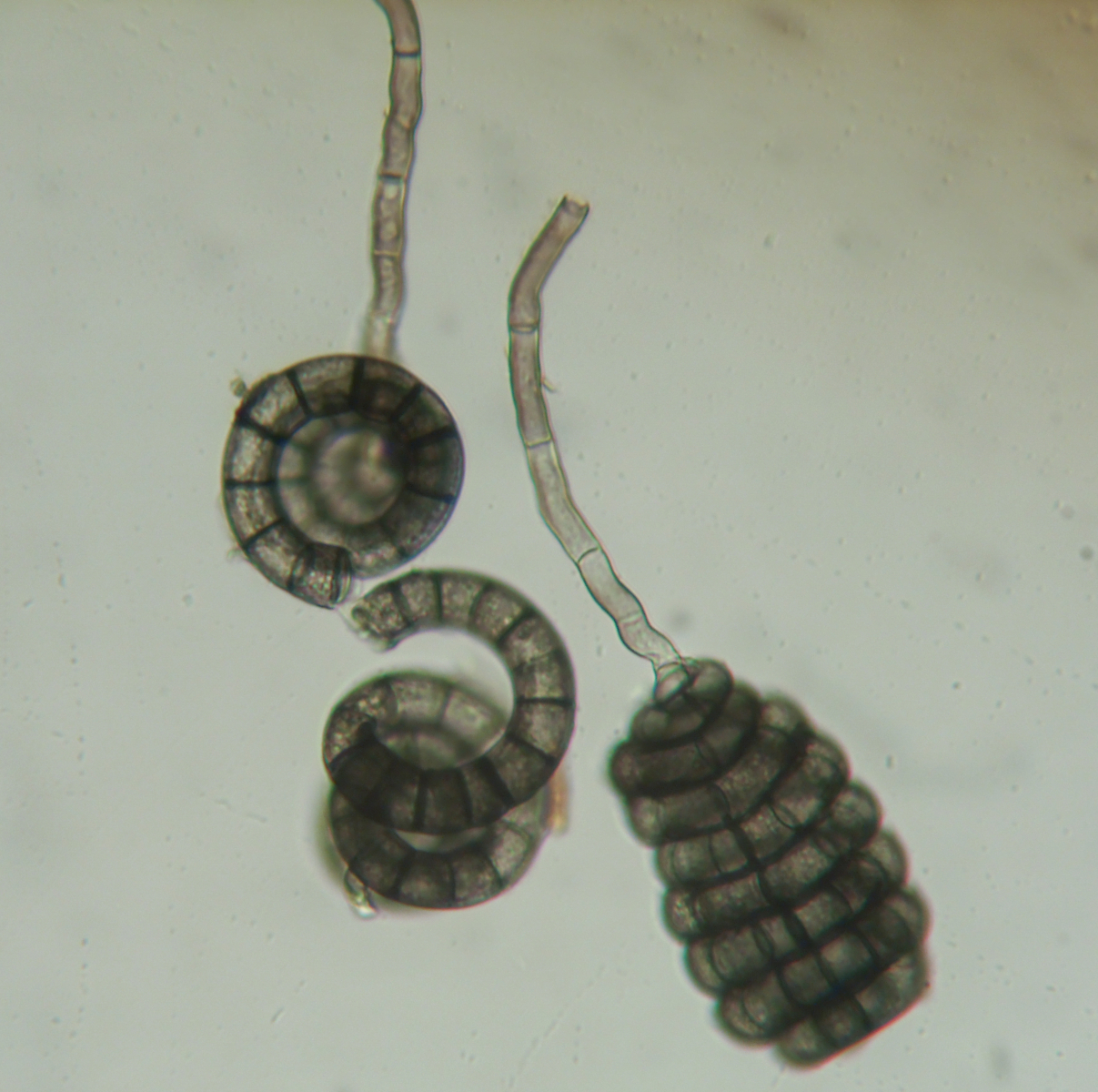 Ich habe diese Schicke Anamorphe auf Feucht liegendem Totholz gefunden. Ich lande mit der Maximalen Sporengröße von knapp 80 µm bei Helicoon richonis, die wohl Größtsporige Art der Gattung.