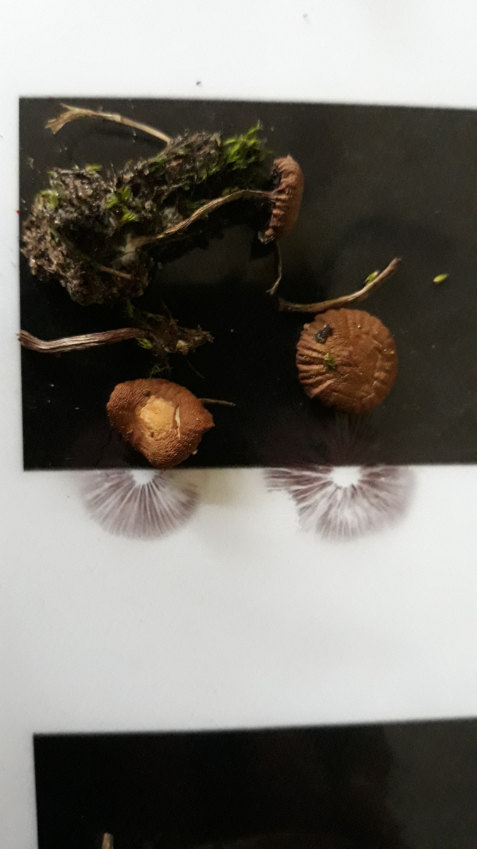 Ja, und m.E. passt auch das ziemlich dunkle (ich würde sagen: violettschwarze) Sporenpulver nicht zu Trompetenschnitzlingen. Unten ein Bild davon mit den inzwischen getrockneten Exemplaren.