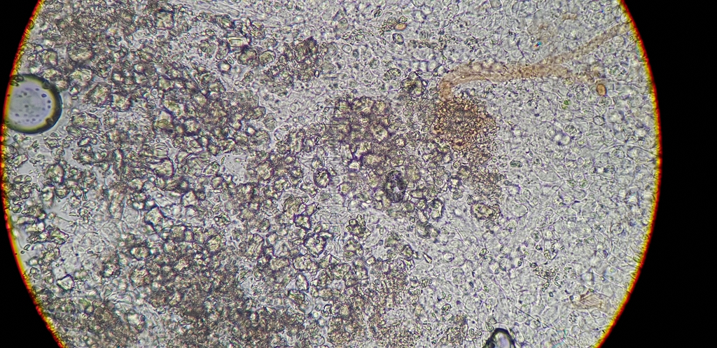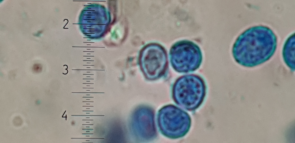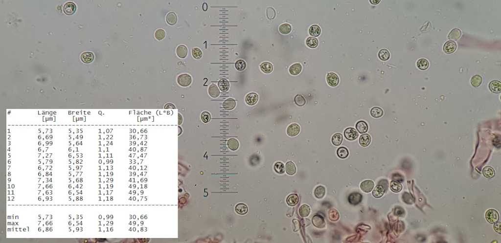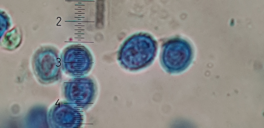 Die Sporen sind Rund und Warzig. Hier in BWB konnten man am besten erkennen, sind auch cyanophil.