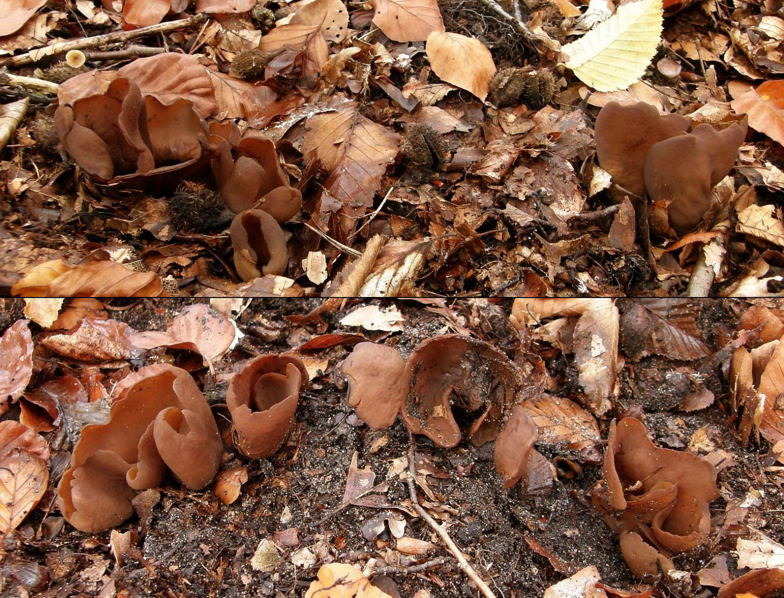 Zwei Kollektionen von Otidea bufonia aus der Viernheimer Heide, jeweils in Rotbuchenwäldern auf mageren (wärmebegünstigten) sauren Sandböden - aber auch mit eingestreuten Kiefern in der Nähe.