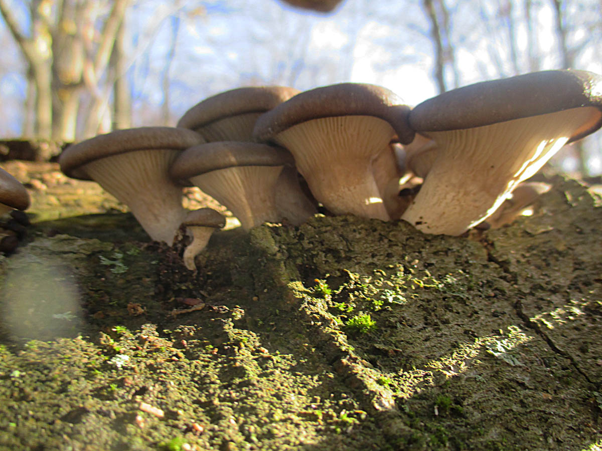 Auch ein paar Muschelseitlinge, ein einzelner Violetter Rötelritterling und Glimmertintlinge waren noch vorhanden.