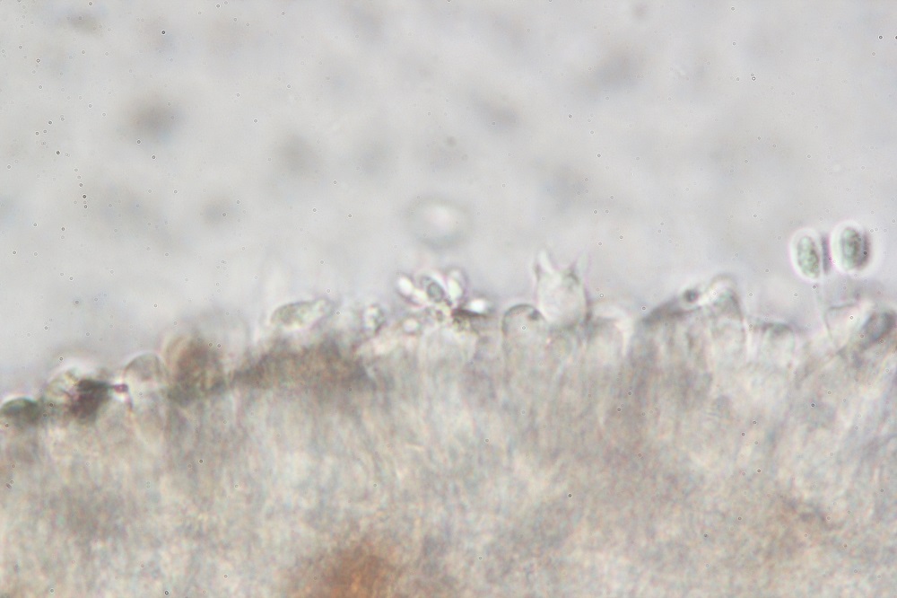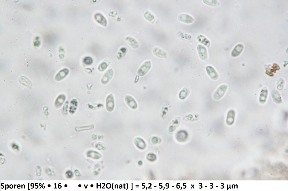 dieser Rindenpilz ist, wie ich schon vermutete, die Mycoacia mit Merkmalen von M. uda (Sporen) und M. fuscoatra. Es gibt keine KOH-Reaktion, die Sporen sind schmal elliptisch und makroskopisch sieht sie eher aus wie M. fuscoatra, aber da passt die Sporenform nicht und es fehlen die typischen Zystiden. Vergleichsfunde sind zum Sequenzieren in Schweden bei K.-H- Larsson. Über das Ergebnis werde ich und das Forum informieren.