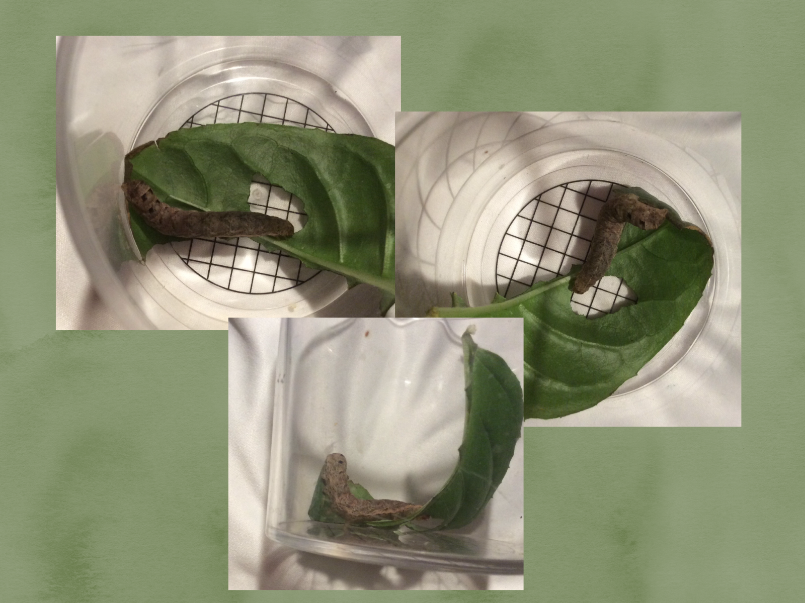 Darin sitzt Eulalia, eine fette Raupe von einem Eulenfalter spec. (?), die mir heute morgen im Wohnzimmer entgegengewobbelt kam. Ich vermute, sie war diejenige, die die ganzen Blätter meiner überwinternden Fuchsie angefressen hat!Kennt die jemand?