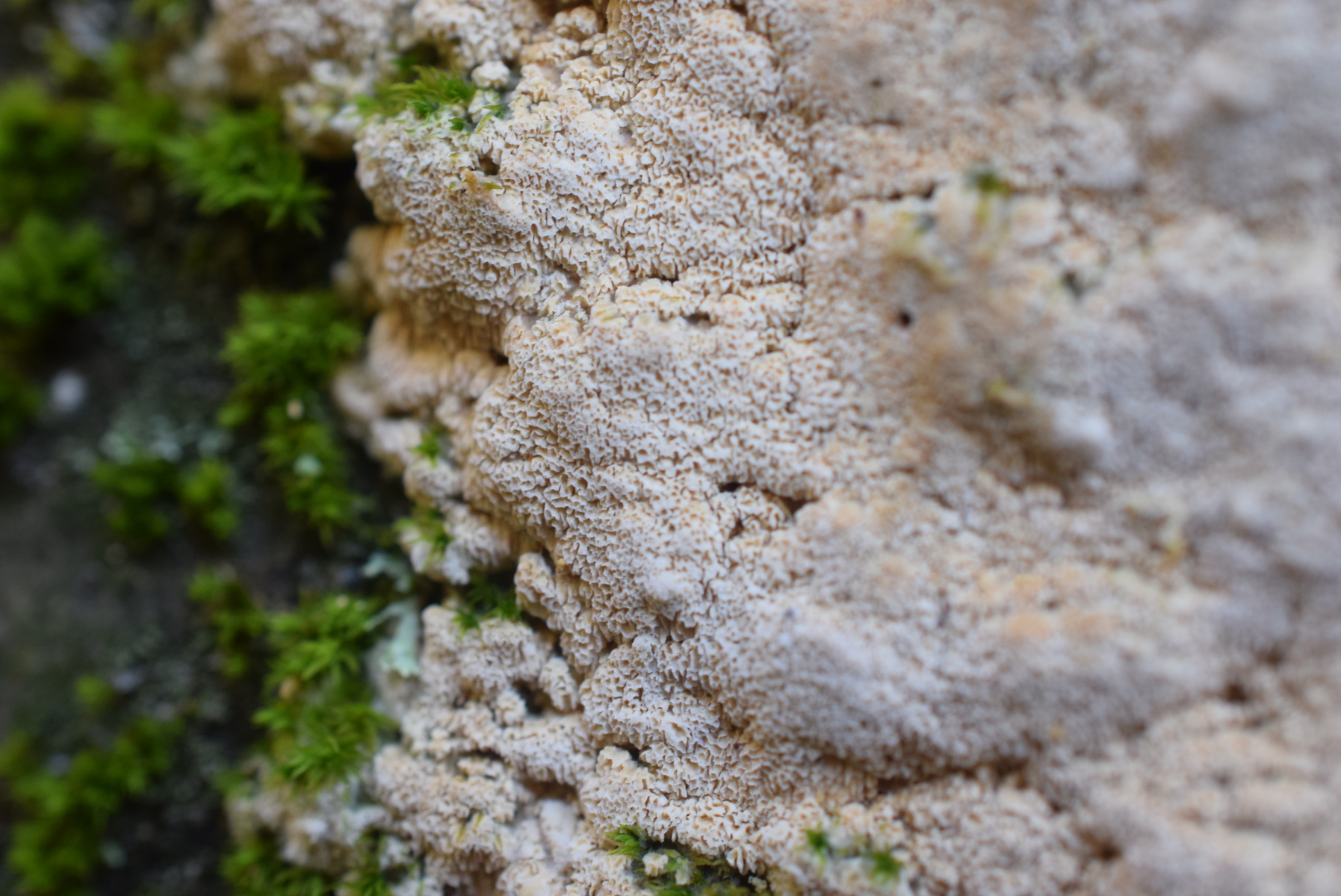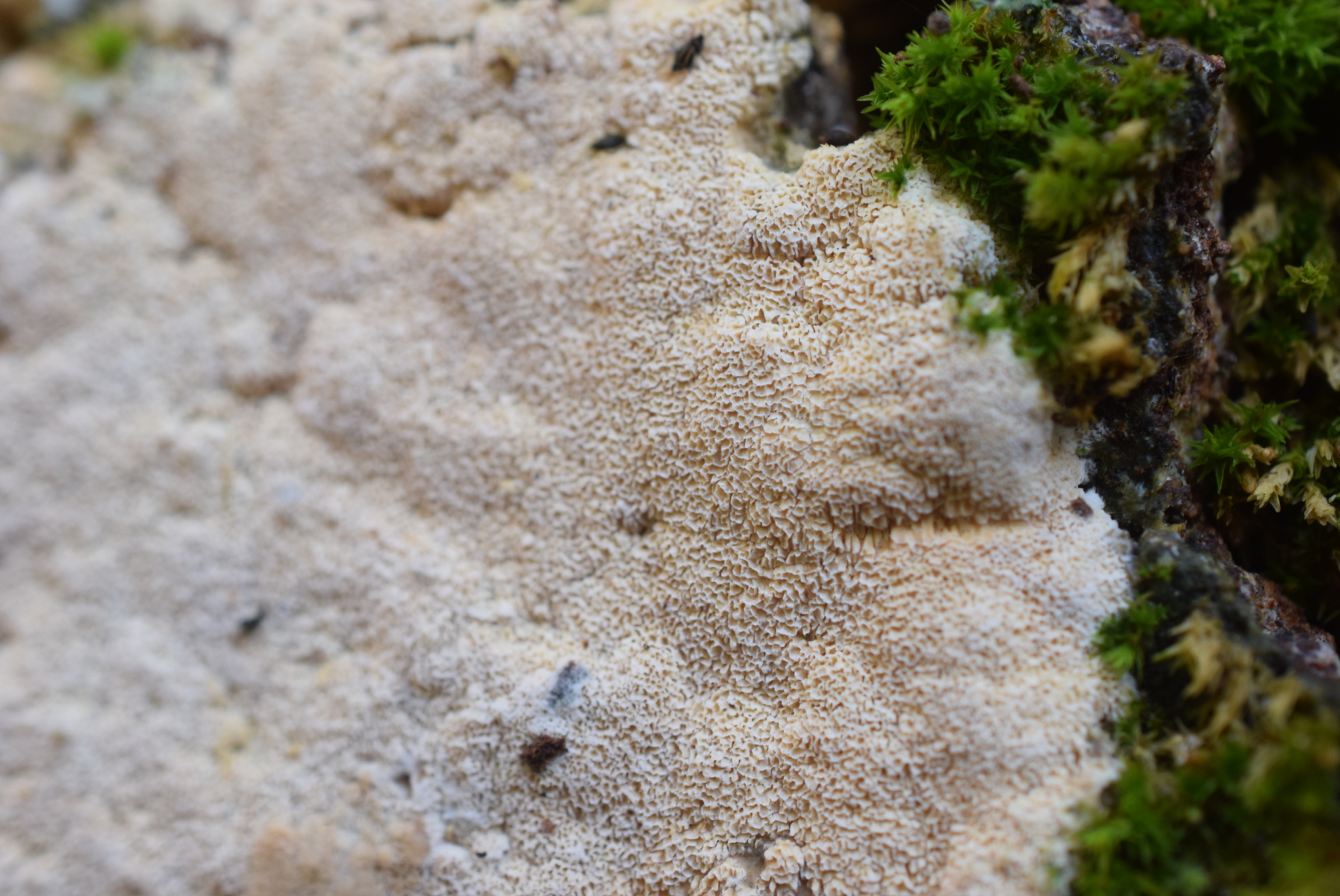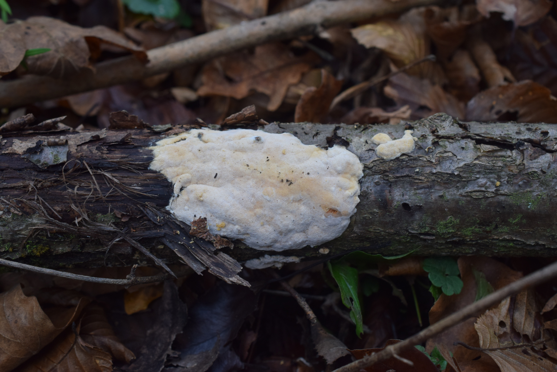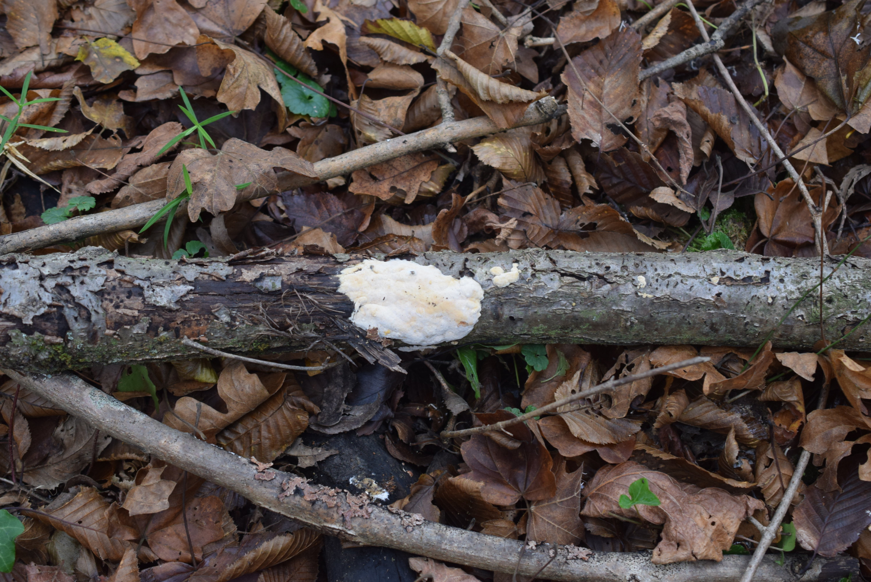 1. An liegende Laubbaum Ast , nur Laubwald , weit und breit keine Nadelbaum ca 90 m ü NHN , ein Steccherinum ?