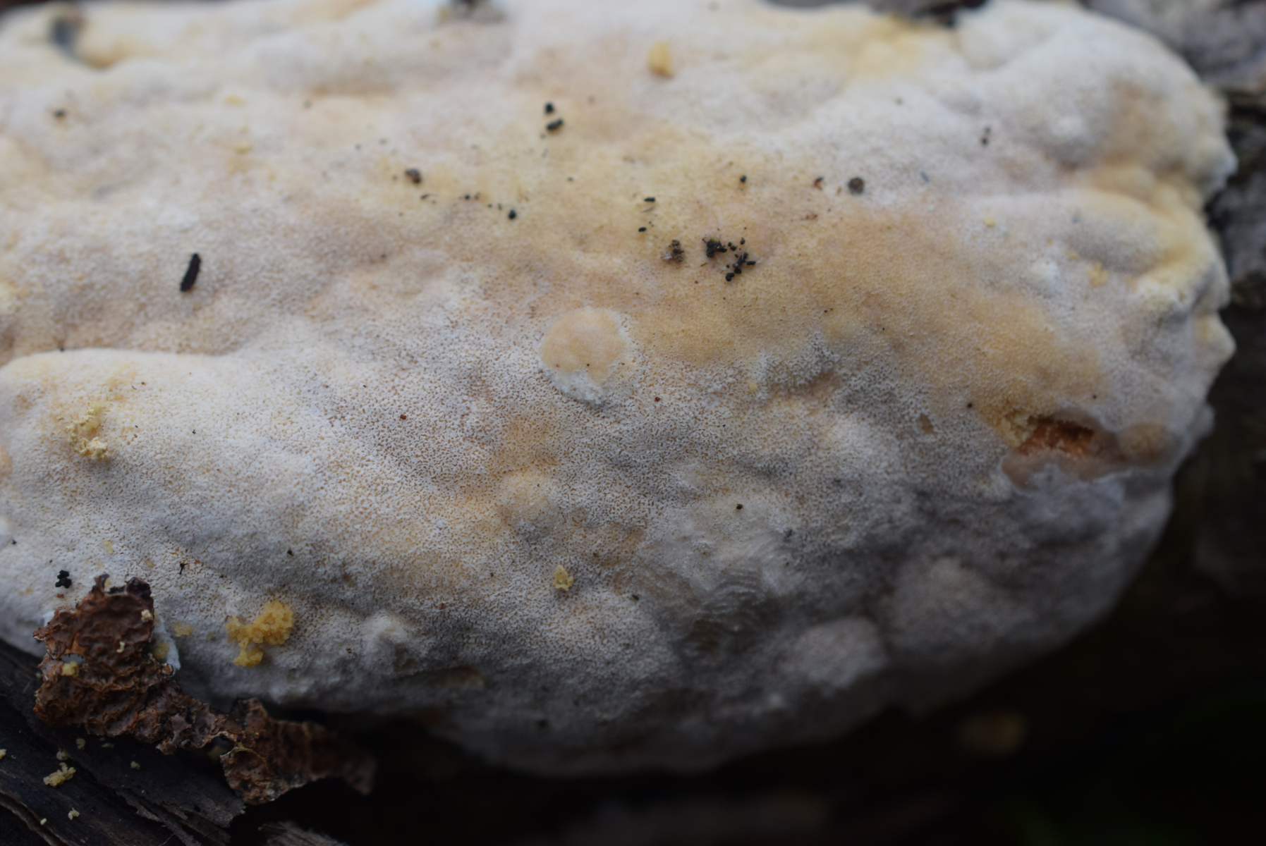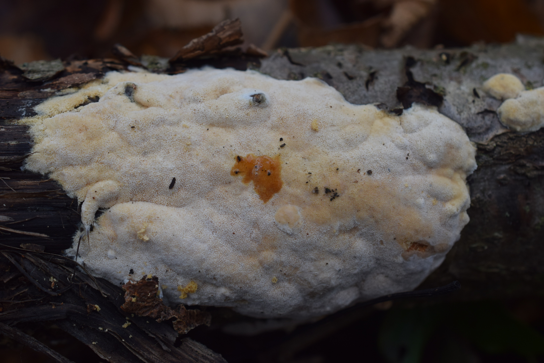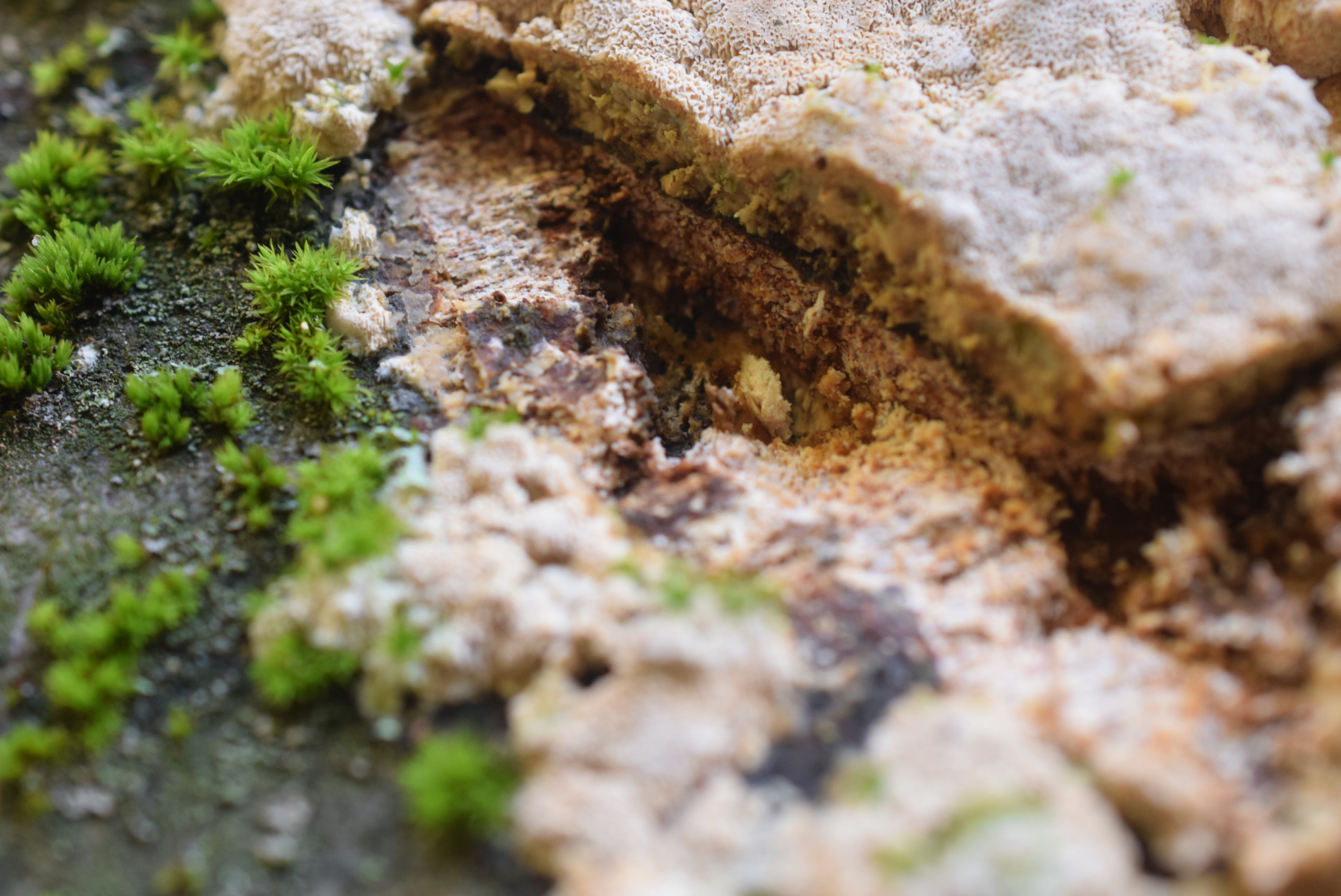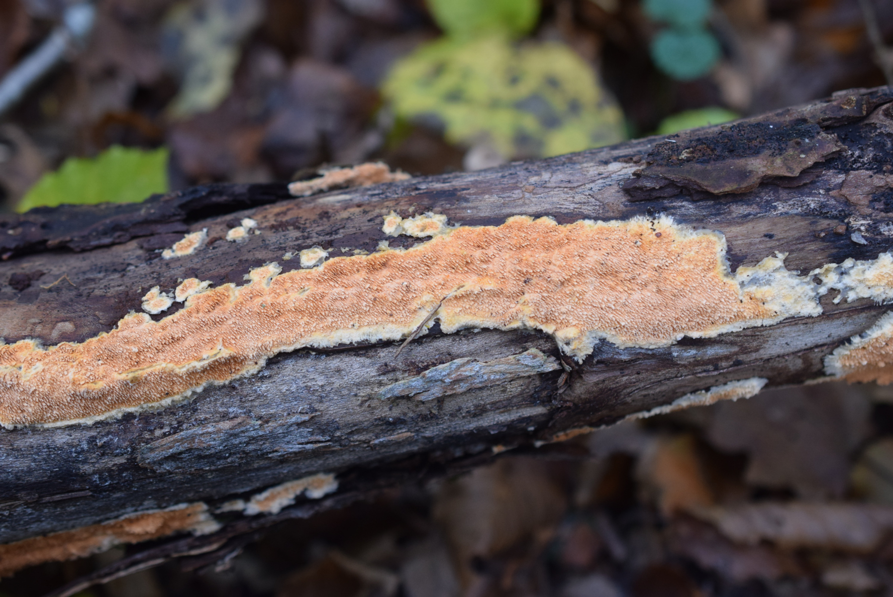 1. An liegende Laubbaum Ast , nur Laubwald , weit und breit keine Nadelbaum ca 90 m ü NHN , ein Steccherinum ?