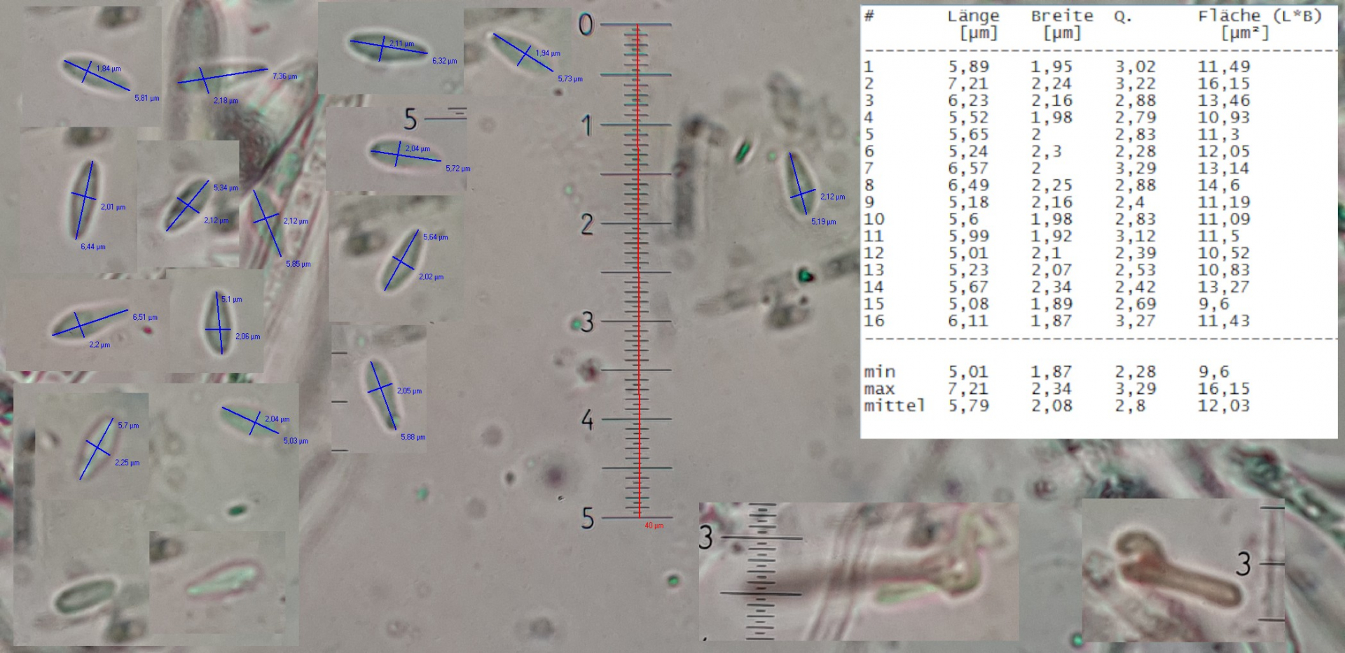 Vermutlich total überflüssig meine Frage, aber gerade bei so kleinsporigen Arten macht sich natürlich eine kleine Abweichung im Umrechnen sehr bemerkbar, wo es bei z.B. Pezizasporen kaum eine Rolle spielt.