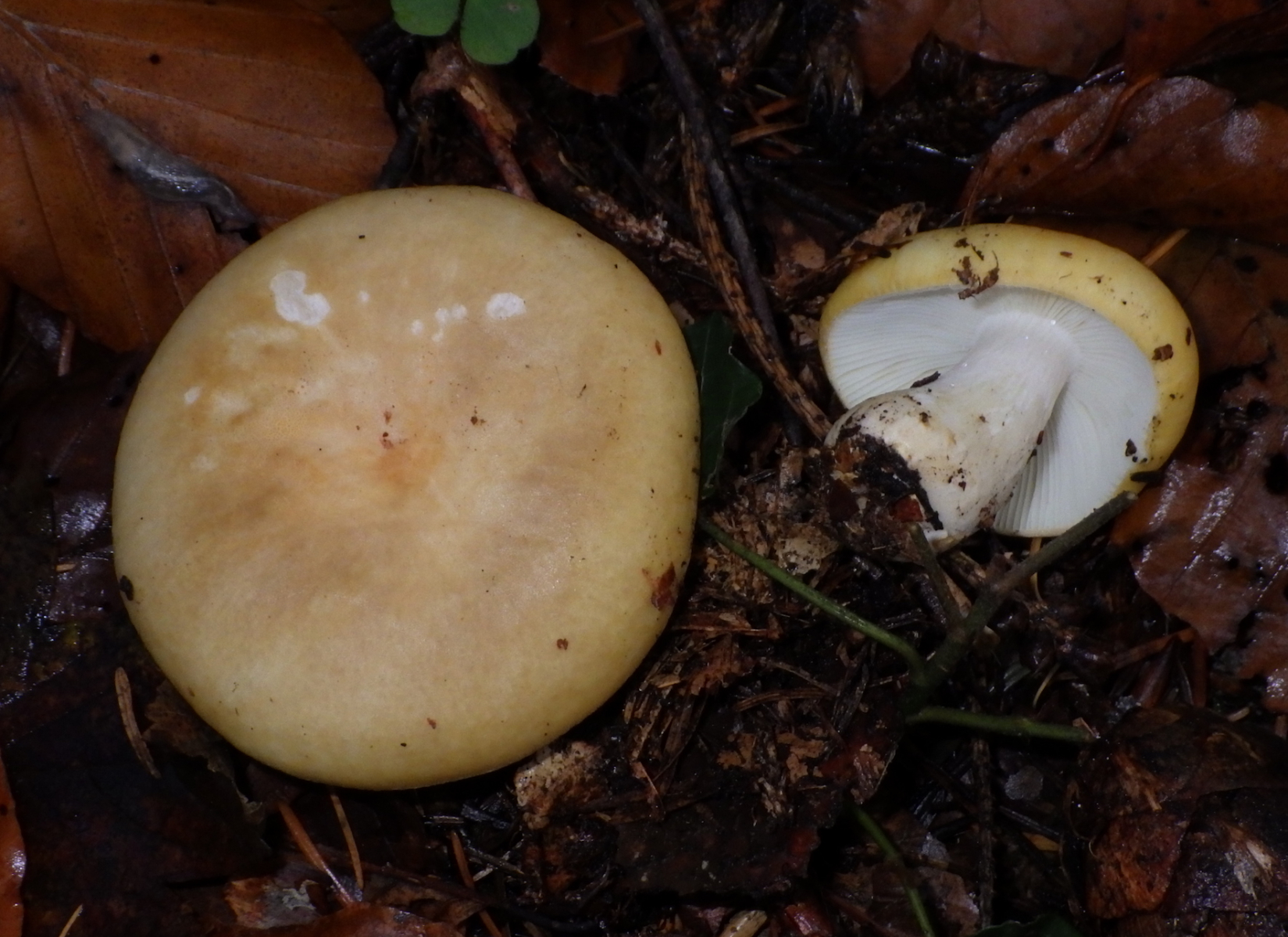 Guten Tag Diese gelblichen Täublinge wachsen zur Zeit im Maiengrünwald CH 550m, jung sind sie deutlich gelb, alt etwas beige, die Lamellen sind weiss, die Geschmacksprobe deutlich schärflich, kann es ein Ocker-Täubling oder ein Zitronen-Täubling sein? Besten Dank für eure Hinweise