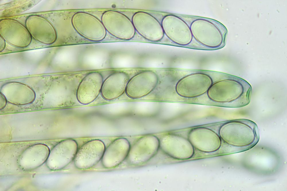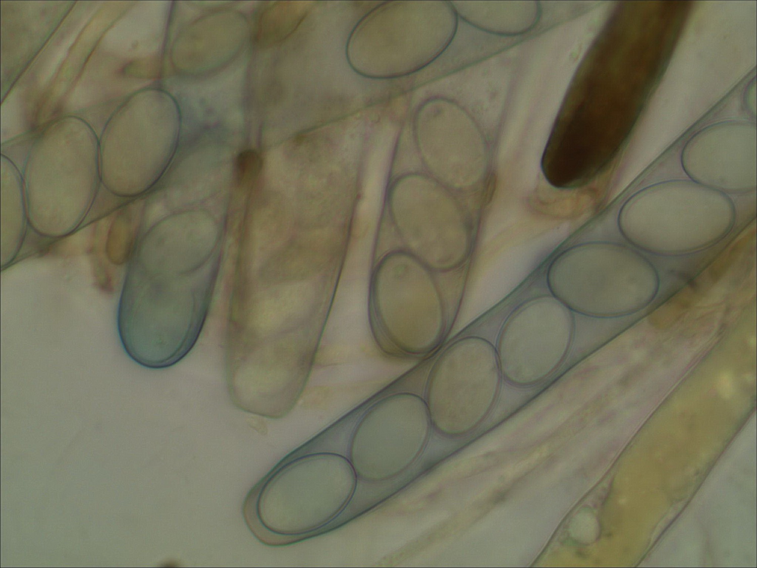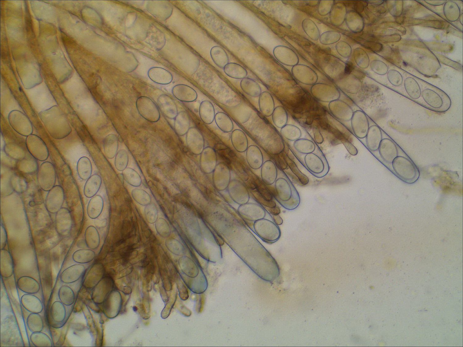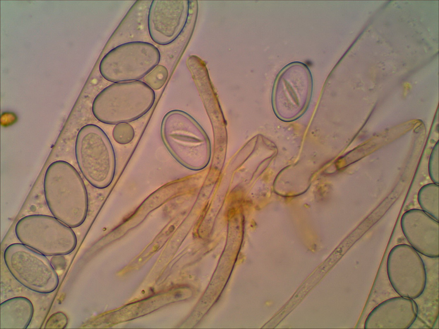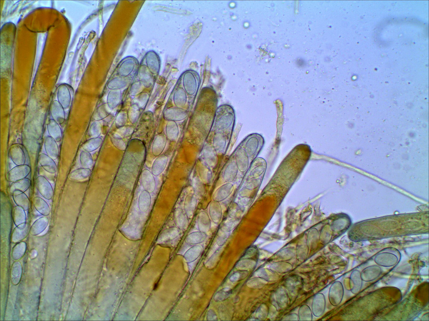 immer typisch hell gefärbt, und in LUGOL färbt sich die Ascusspitze nicht blau, nur die Schläuche färben