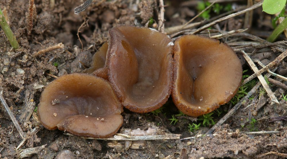 Ebenso auffällig ist, sie bilden flach linsenförmige und nicht becherförmige Fruchtkörper.