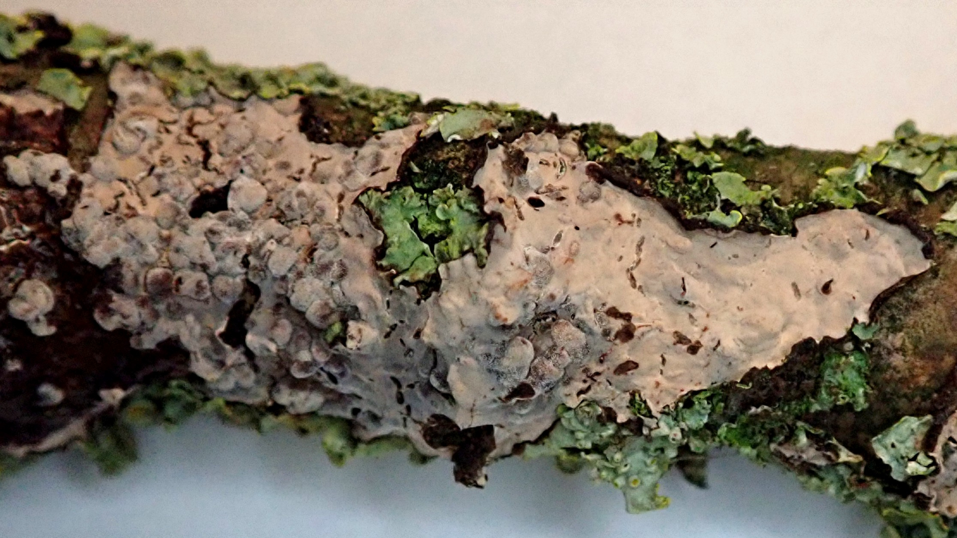 Er wächst auf einem kleinen Zweig, 1,5cm Durchmesser, der auf einem Waldweg lag (Eichen-Hainbuchenwald).