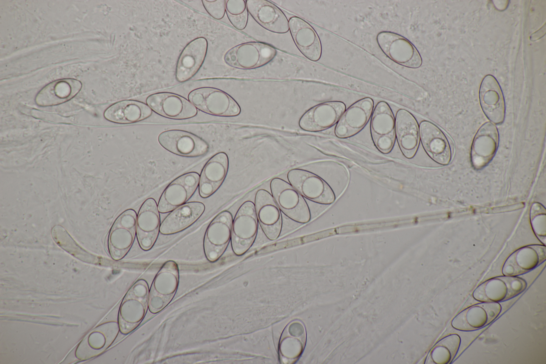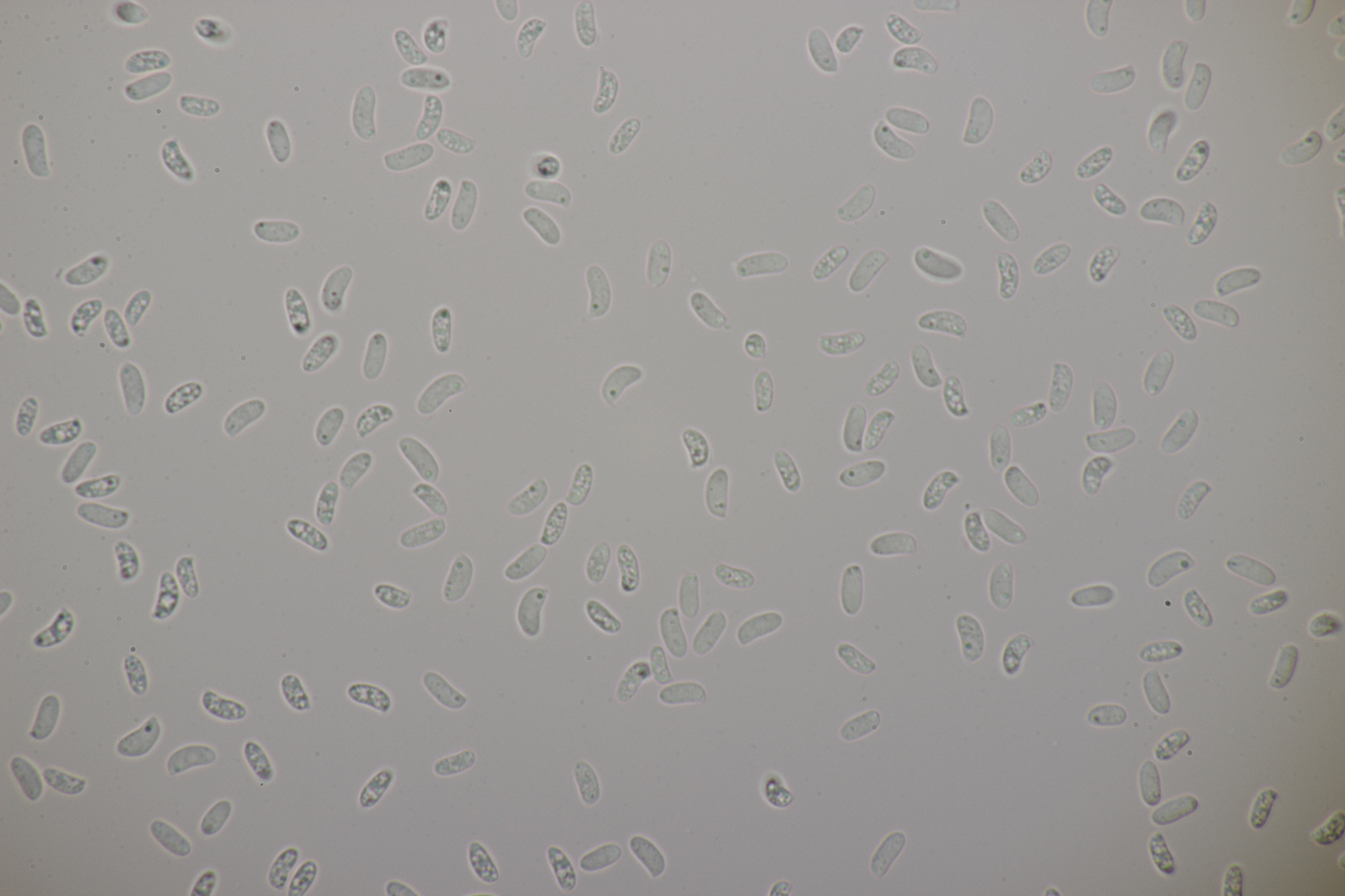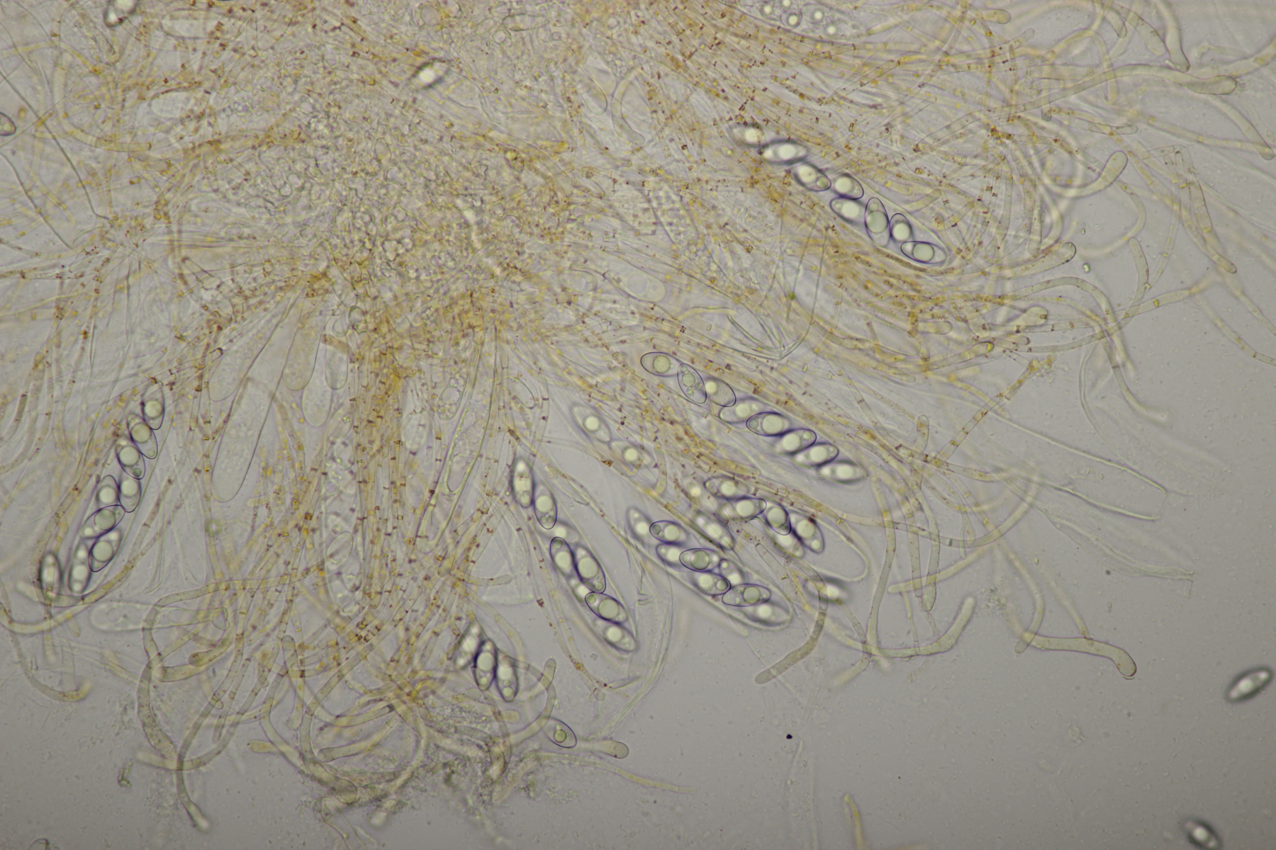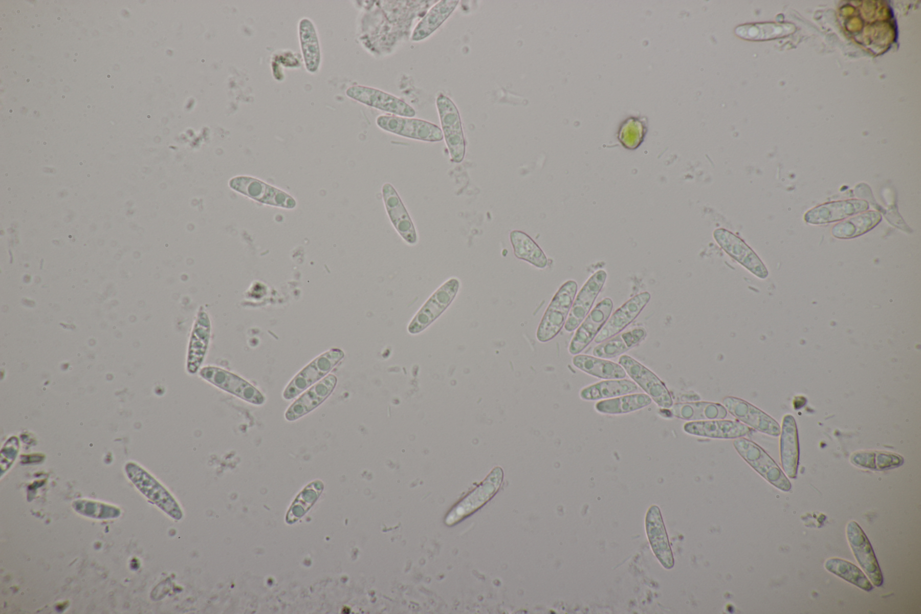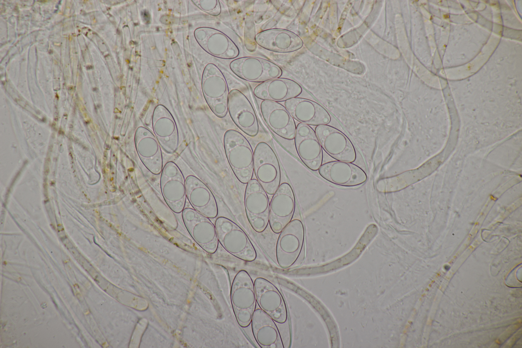 2. Ascocoryne mit Sporengröße (16.7+-1.0) µm x (4.4+-0.3) µm, Q=3.8+-0.3, womit ich bei Ascocoryne sarcoides lande