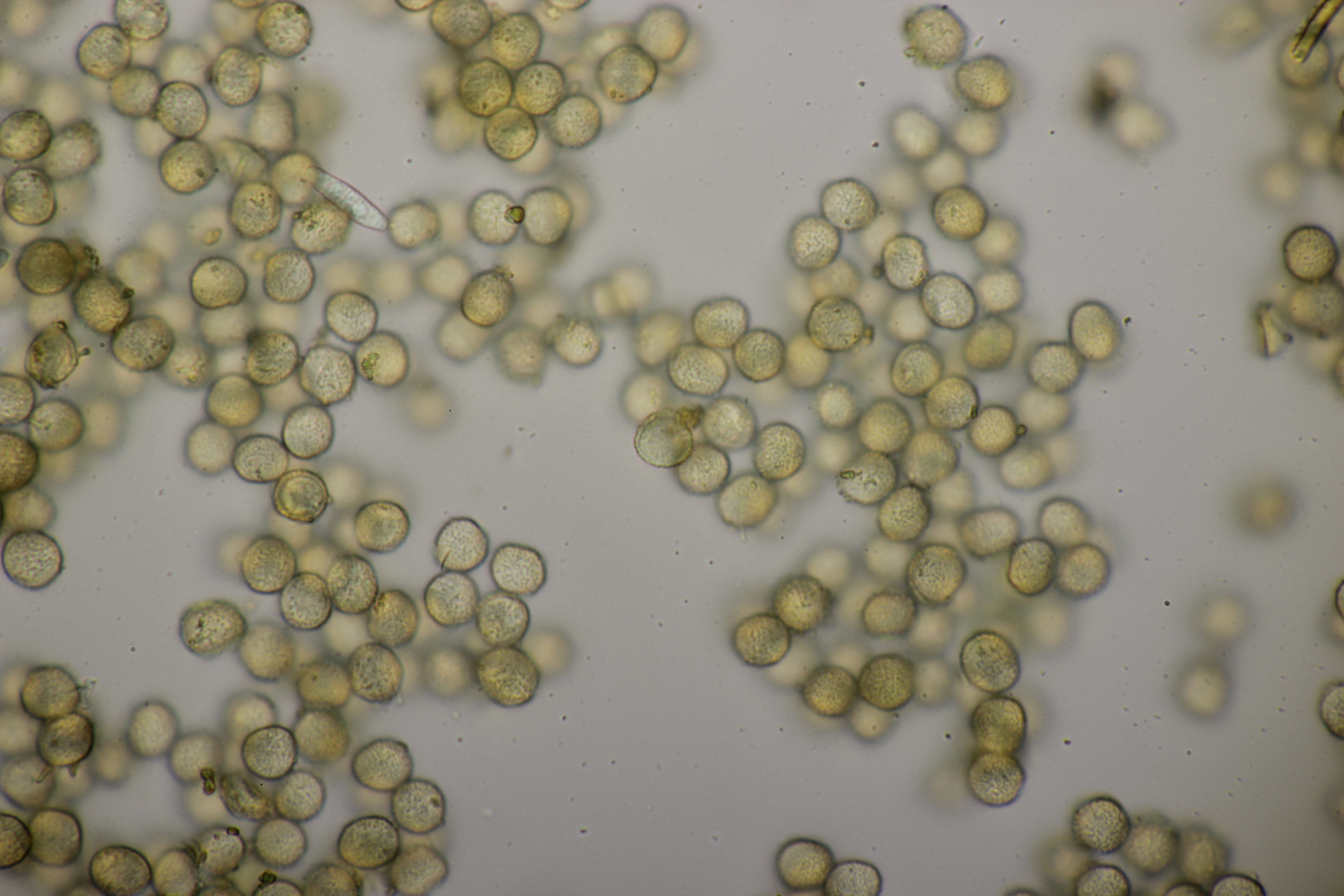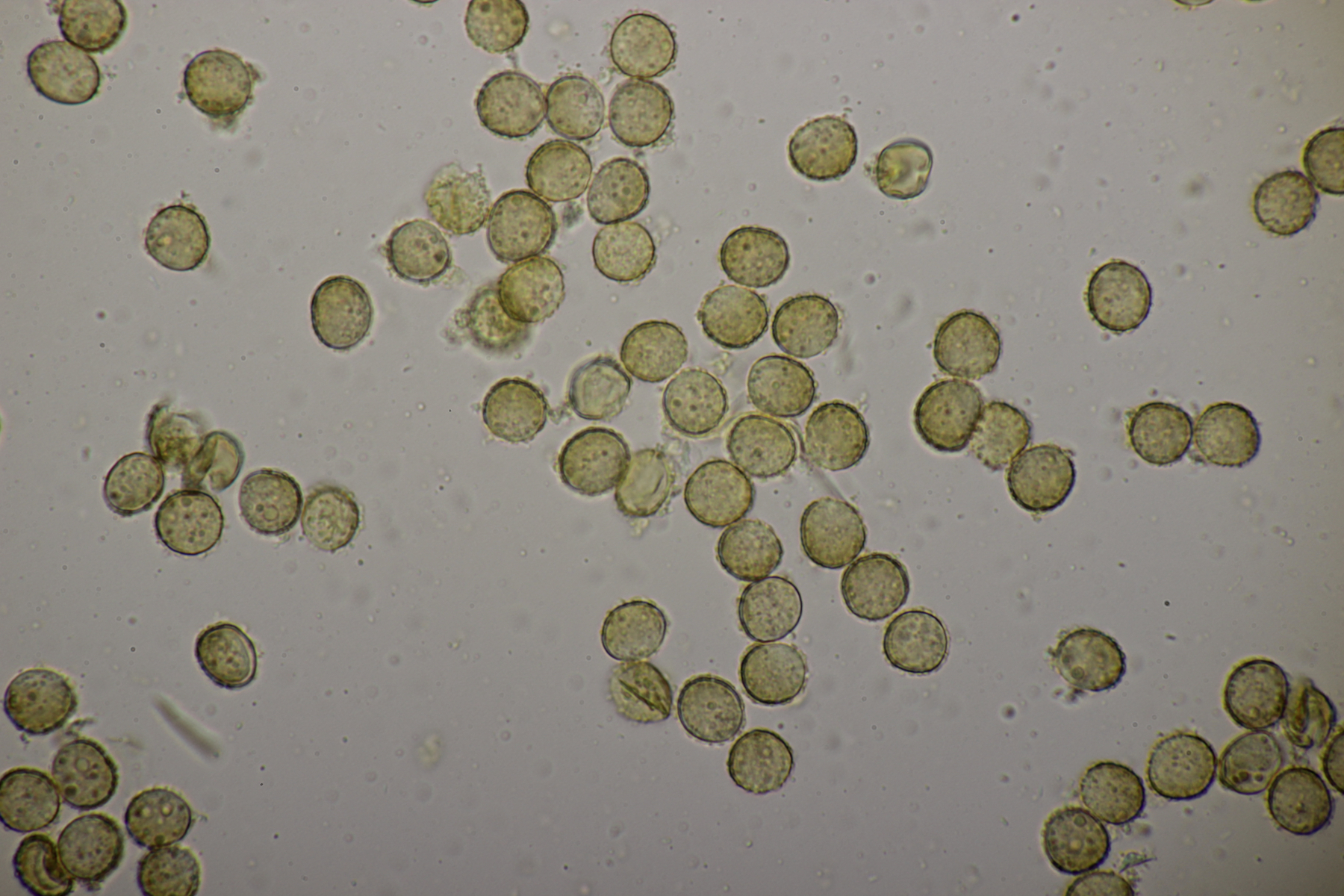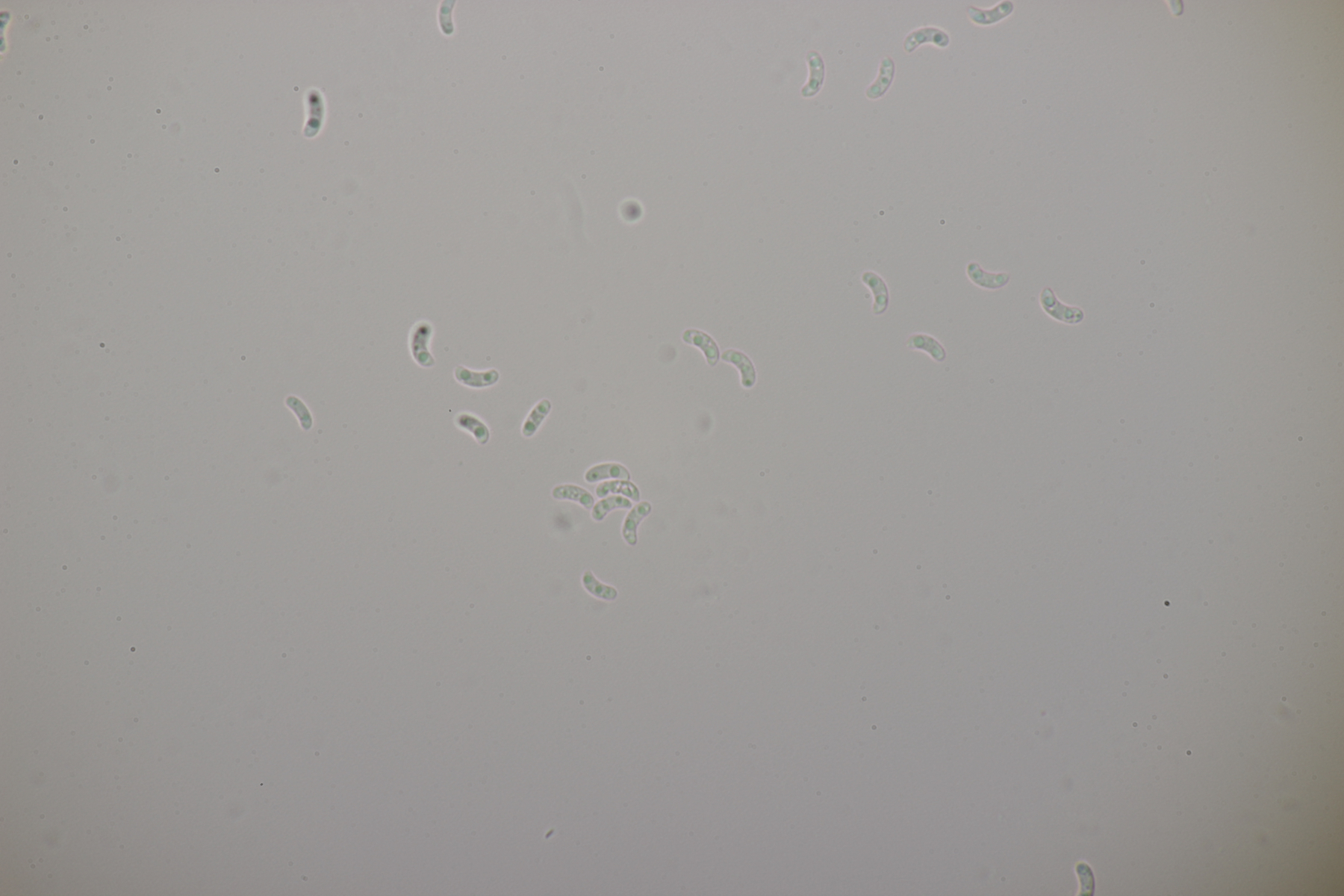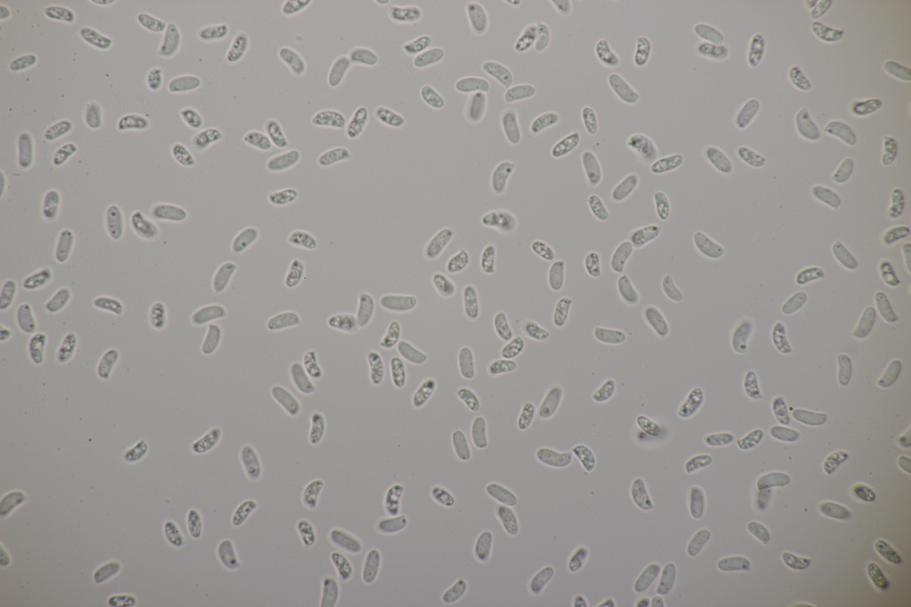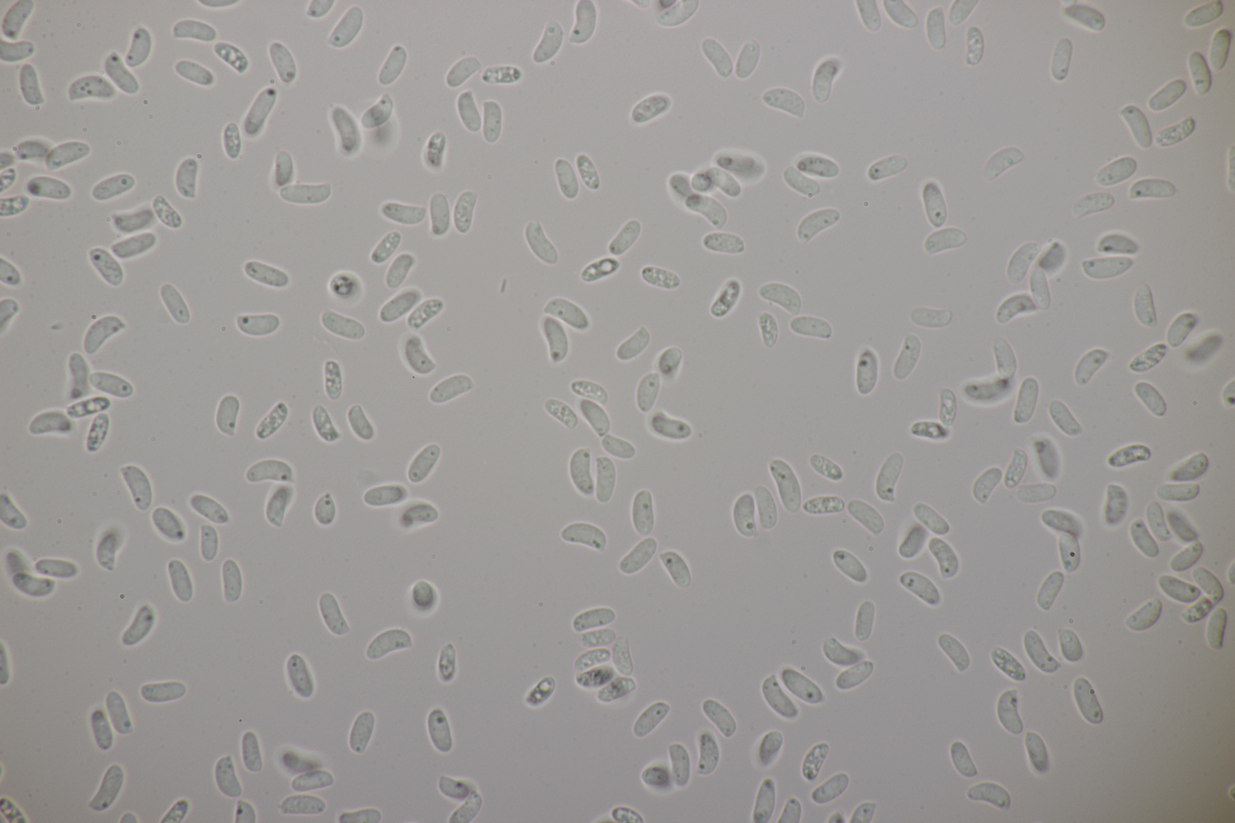 2. Ascocoryne mit Sporengröße (16.7+-1.0) µm x (4.4+-0.3) µm, Q=3.8+-0.3, womit ich bei Ascocoryne sarcoides lande