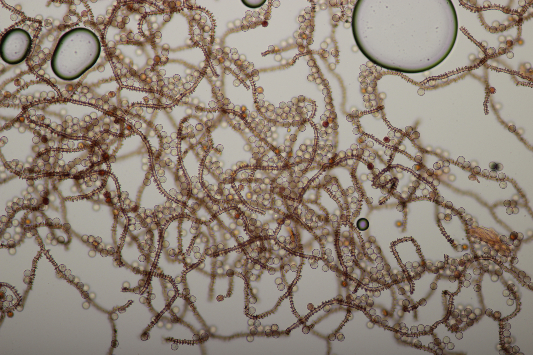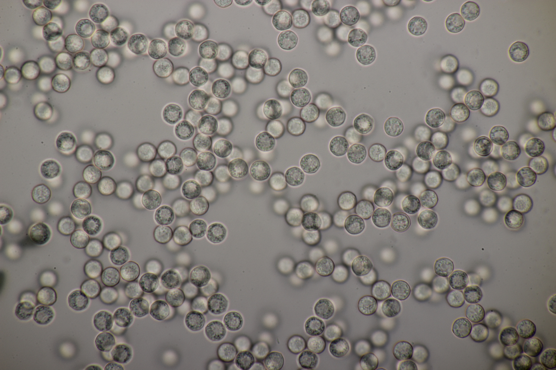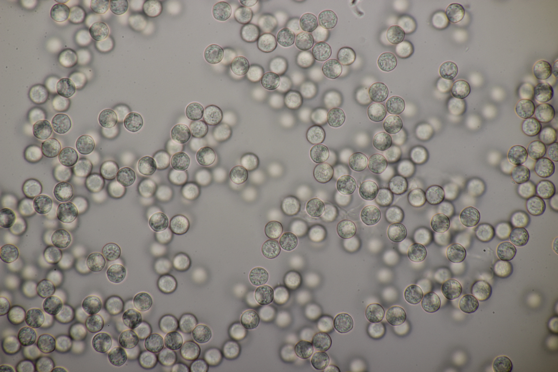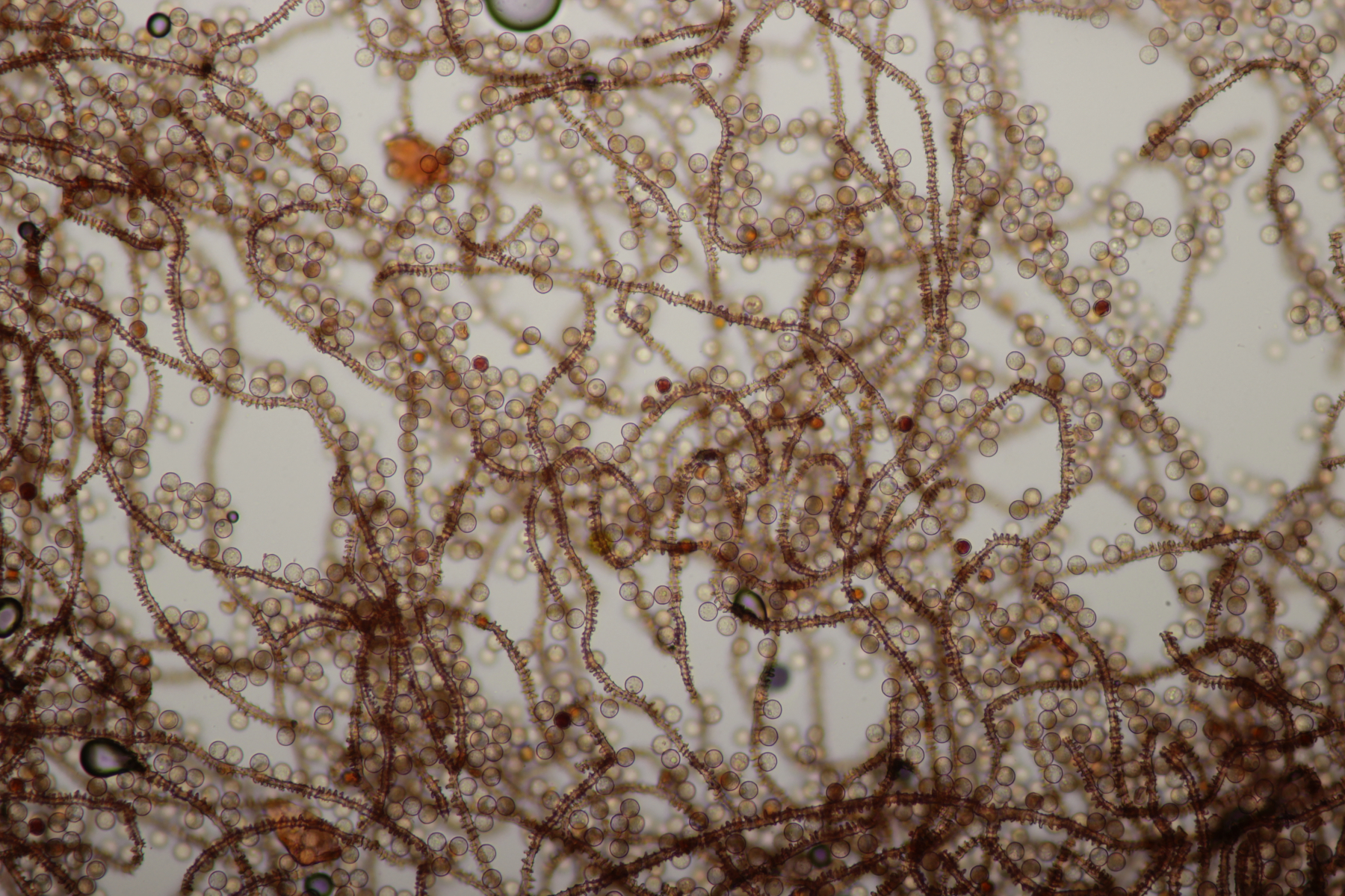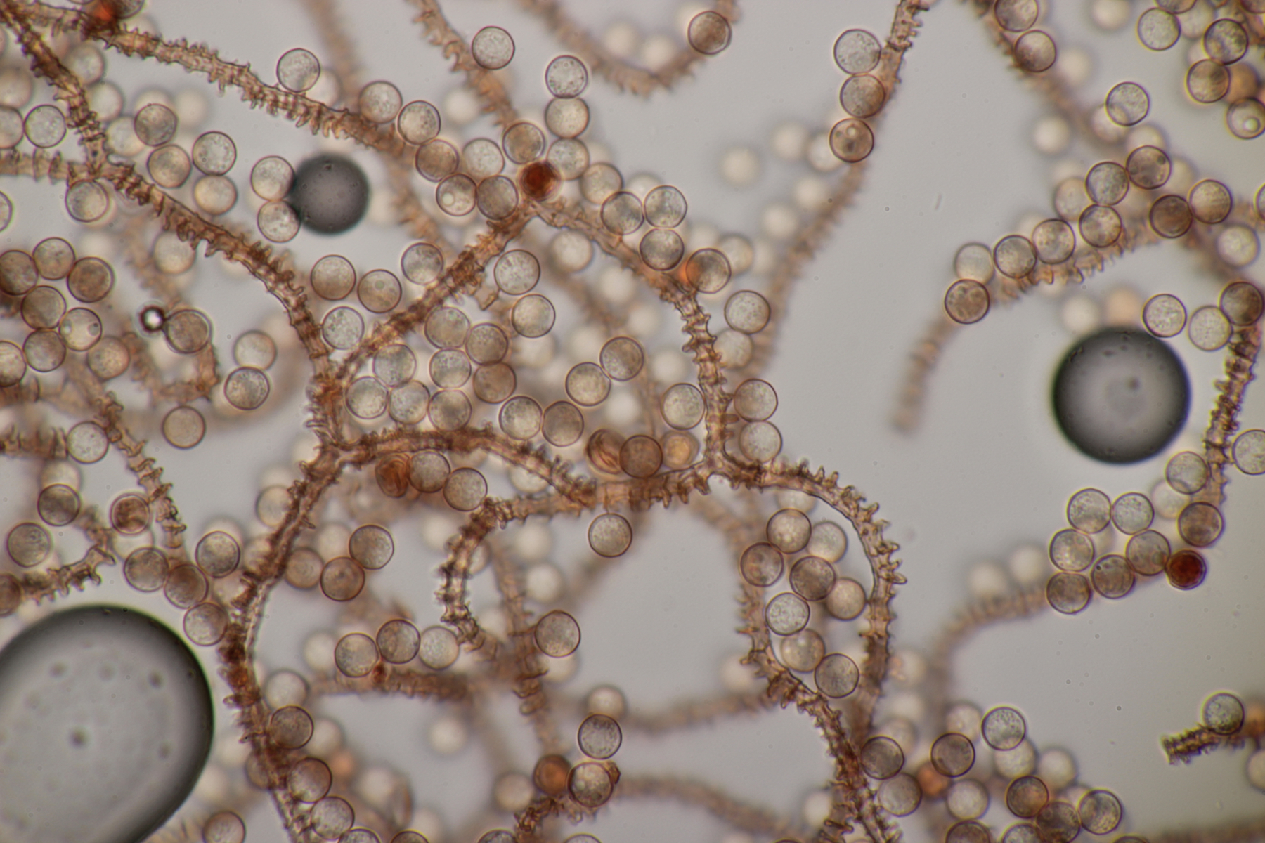 2. Ascocoryne mit Sporengröße (16.7+-1.0) µm x (4.4+-0.3) µm, Q=3.8+-0.3, womit ich bei Ascocoryne sarcoides lande