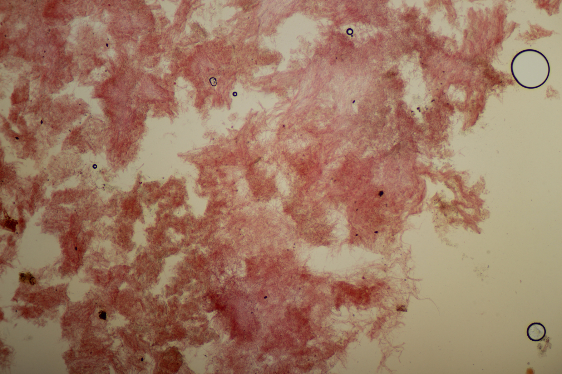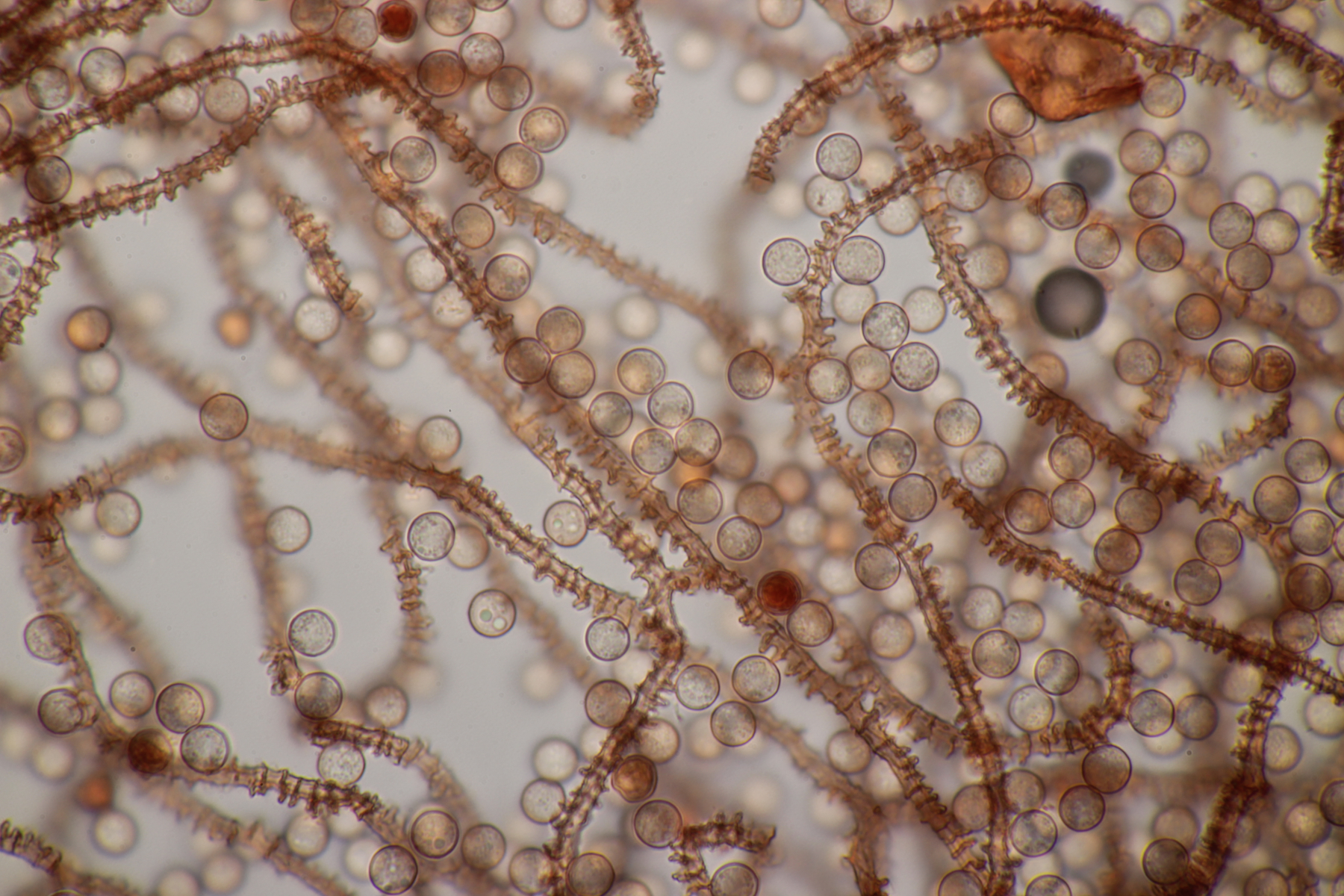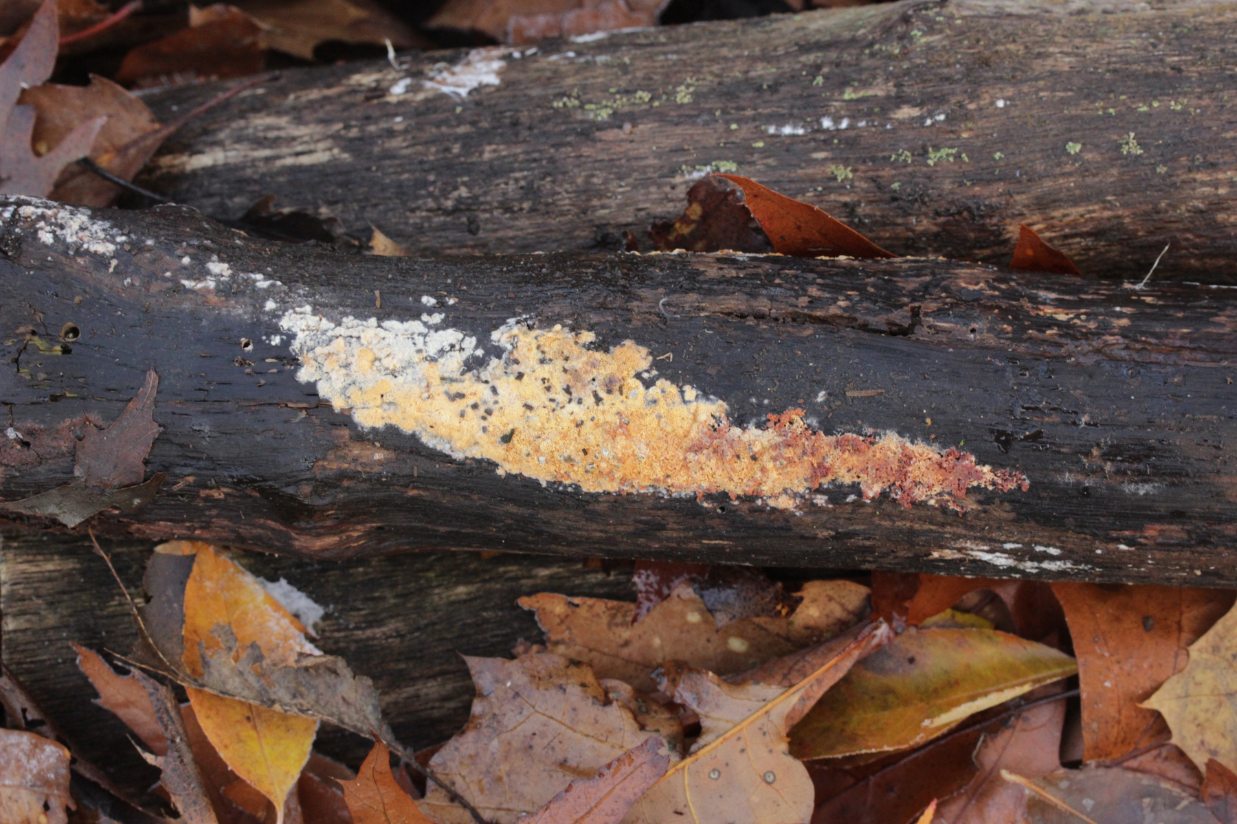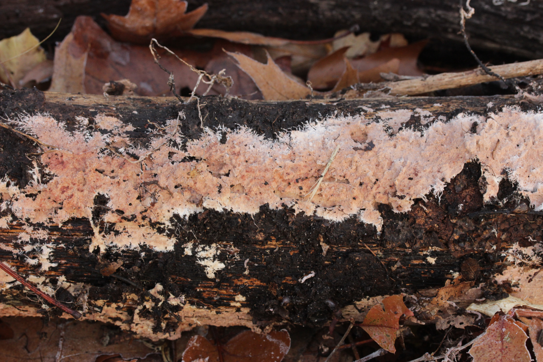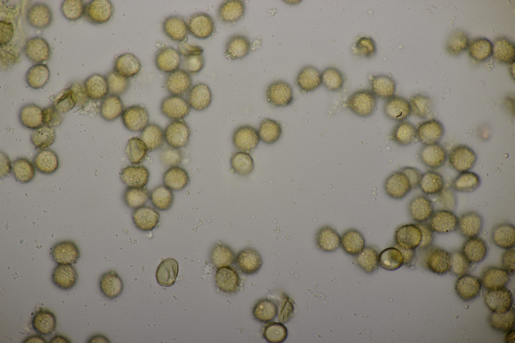 4. Ein Porling... aber diesmal immerhin mit Sporen, die (7.4+-0.5) µm x (2.3+-0.2) µm groß sind. Das Hyphensystem scheint monomitisch zu sein, Schnallen gibt es keine. Der Fruchtkörper färbt mit 3% KOH intensiv dunkelrot. Wenn man beim Mikroskopieren KOH zugibt, entfärbt sich der Pilz. Ich würde hier zu einer Ceriporia tendieren und lande dann bei C. purpurea. Kann die farblich so orange sein?