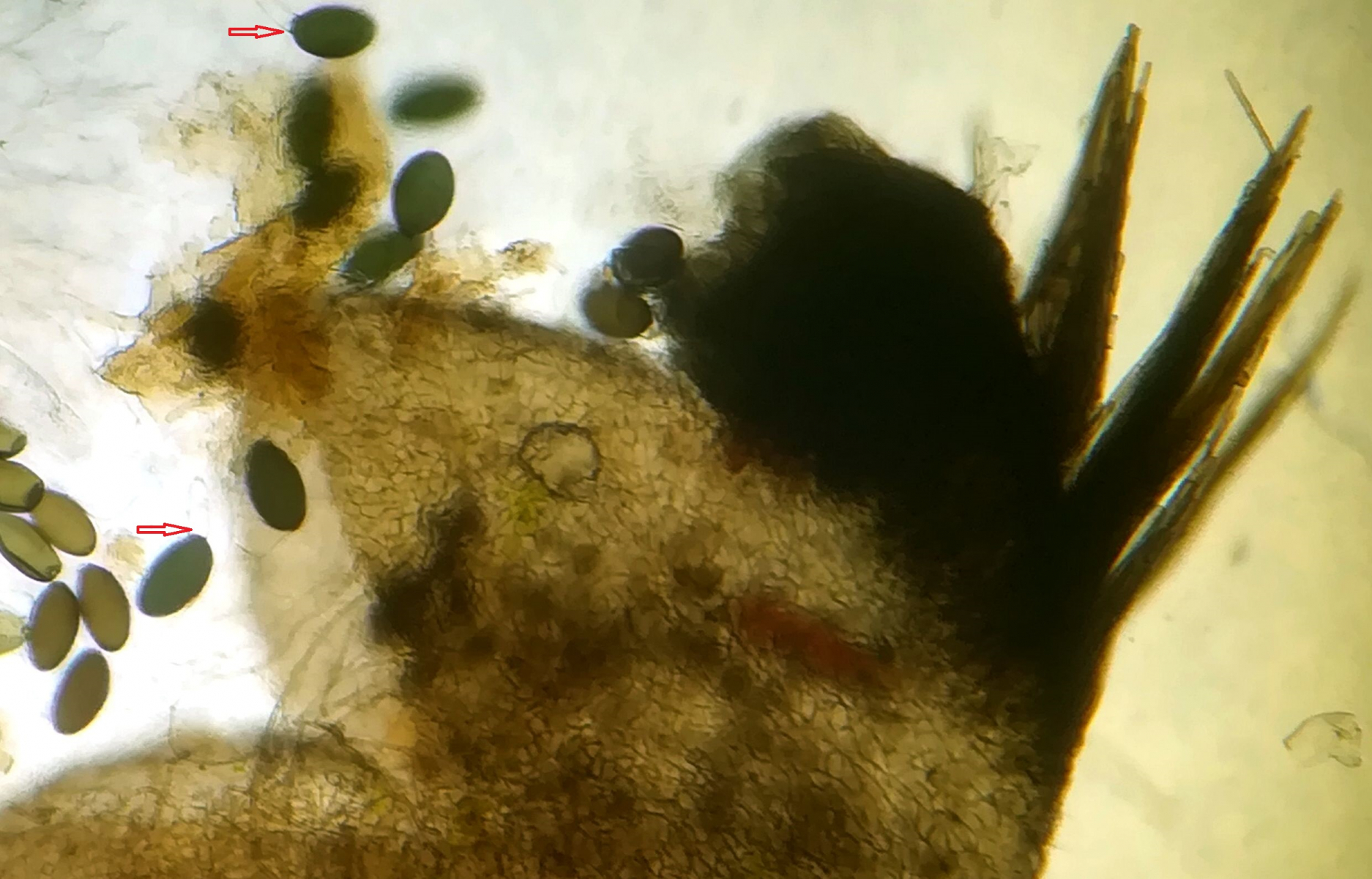 - Haare an der Perithecienmündung habe ich mit bis zu 180 µm Länge gemessen, sie sind stark septiert und apikal abgerundet