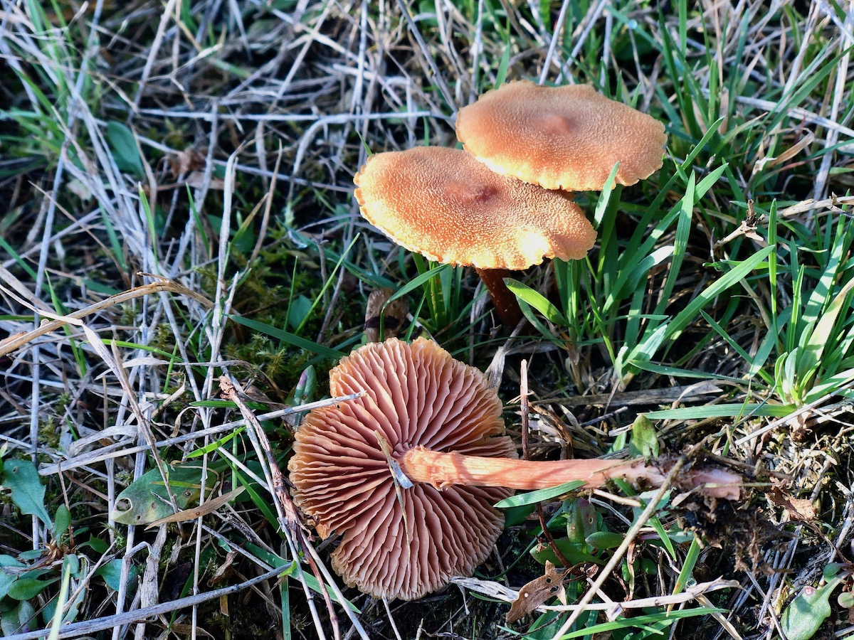 Das müssen Flockenhütige Lacktrichterlinge sein. Die Art war mir bis dato unbekannt. Aber es gibt sie. Hier das Beweisfoto. Werden die jetzt nach mir benannt?