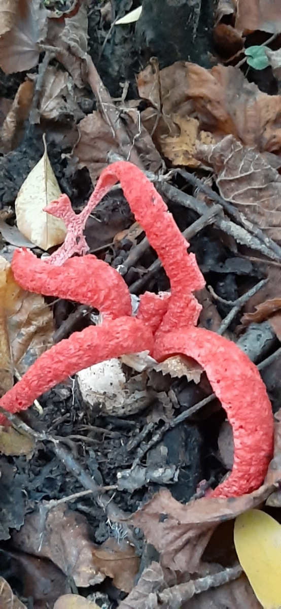 Ja , der erste ist der Tintenfischpilz Clathrus archeri , der Zweite ein Öhrling.