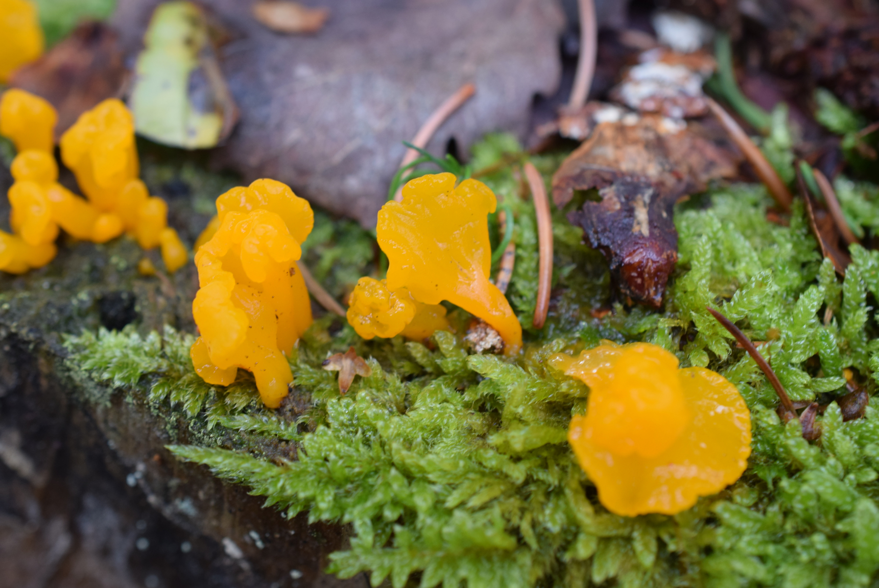 Auch bei dem Fund auf dem verlinkten Bild bin ich sehr, sehr skeptisch. Typischerweise sollte Dacrymyces chrysospermus halt >so aussehen<. Wobei auch da bei den Bildern am Ende eine Kollektion mit so komisch spateligen fruchtkörpern ist. Generell findet man im Netz so einige Bilder, wo ich die Bestimmung als Dacrymyces chrysospermus in Frage stellen würde. Daß diese spateligen Formen in die Variationsbreite passen, da habe ich erhebliche Zweifel.