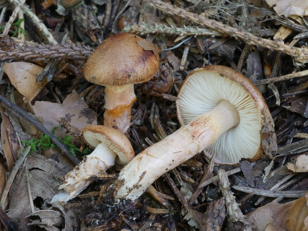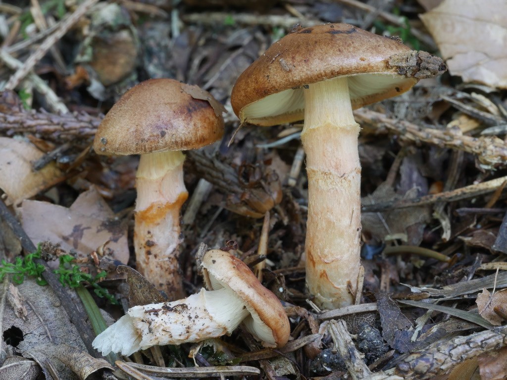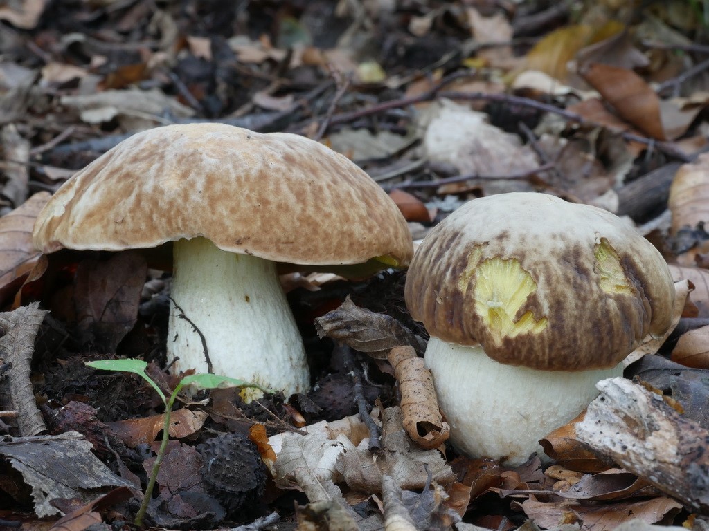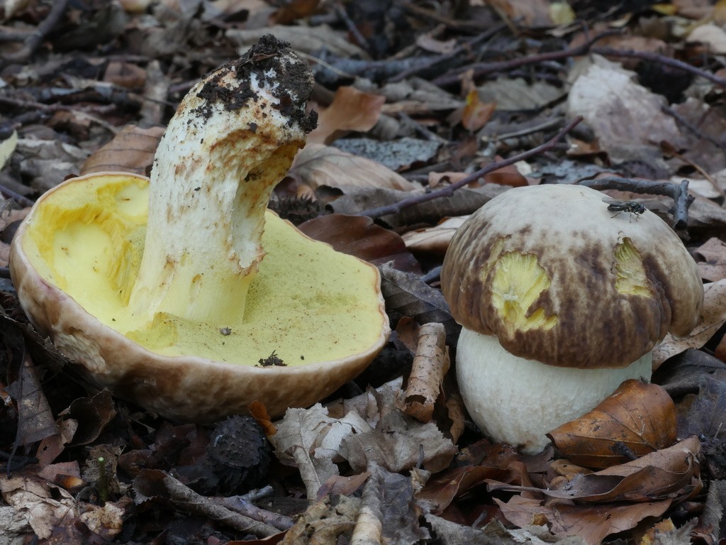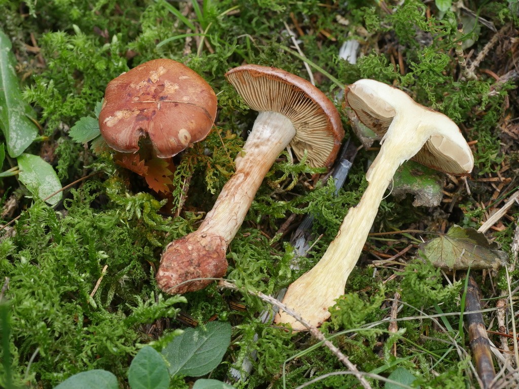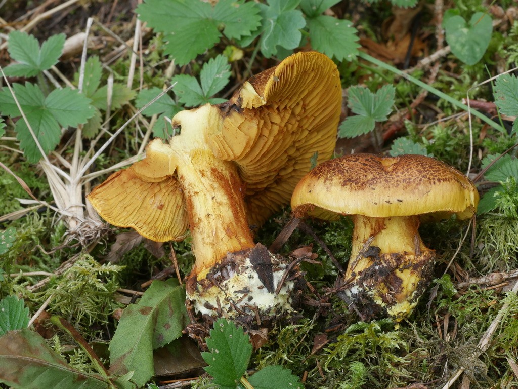 Die Limacella würd ich für L. glioderma halten und bei dem Schafporling sollte es sich mit den schwarzen Stielflecken und den Gelbtönen um Albatrellus citrinus handeln.