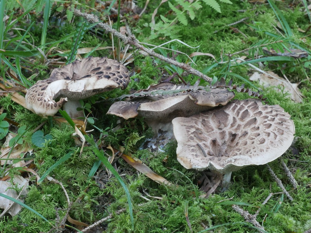 Kleiner Gedanke zum Tigerritterling im Nadelwald: Das passt schon genau so zusammen. Der "echte" Tigerritterling (Tricholoma pardinum) ist eher ein Begleiter von Nadelbäumen im bergigen Gelände (mag's aber auch basisch), der viel häufigere "Tigerritterling" mit den undeutlicheren Hutschuppen in basischen, thermophilen Laubwäldern ist Tricholoma filamentosum.