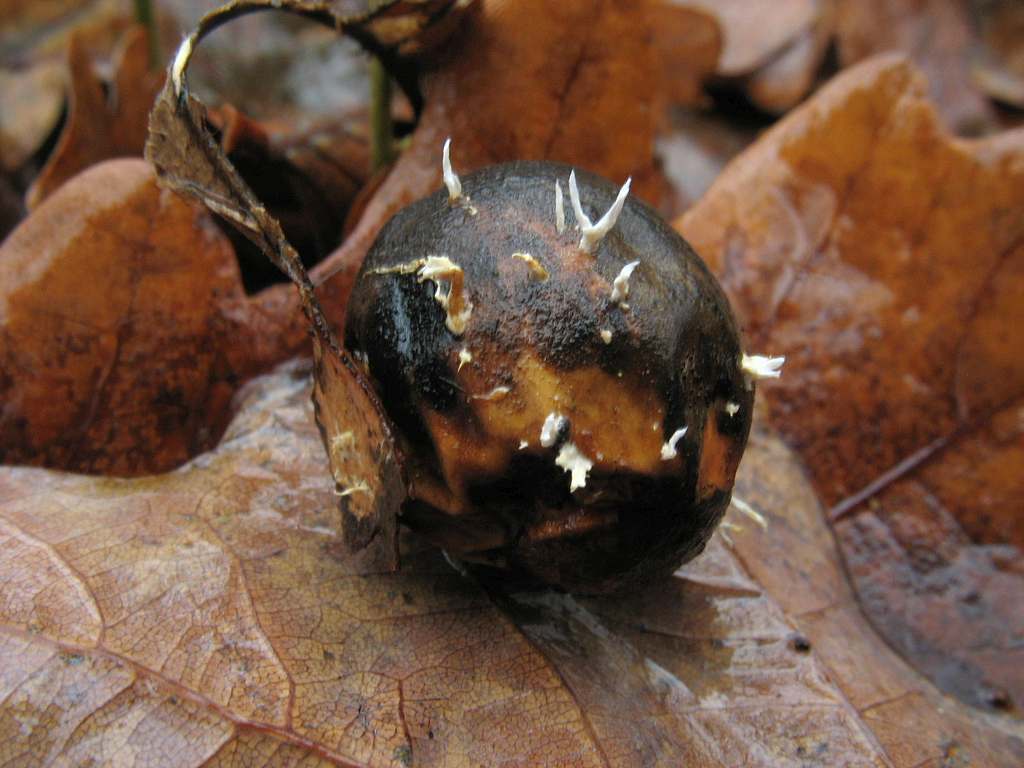 dieser hier geriet in meine Fänge, als ich am letzten Wochenende noch mal einen Korntrollgang machte. Das Substrat scheint mir Haselnuss zu sein, sicher bin ich da keineswegs, vielleicht ist es auch eine andere Frucht. Das Areal ein Eichen-Hainbuchen-Wald mit eingestreuten Haseln. Das winzige Pilzchen ansich vermittelt mir den Eindruck einer Xylaria. Da gibts aber viele, so um die 50 gibt meine Datenbank her, aber mit Literaturstellen sieht es sehr mau aus und bislang ist mir auch noch kein ordentlicher Schlüssel für die Gattung unter die Finger gekommen. Wenns denn eine Holzkeule ist, gibts da Ähnliches?