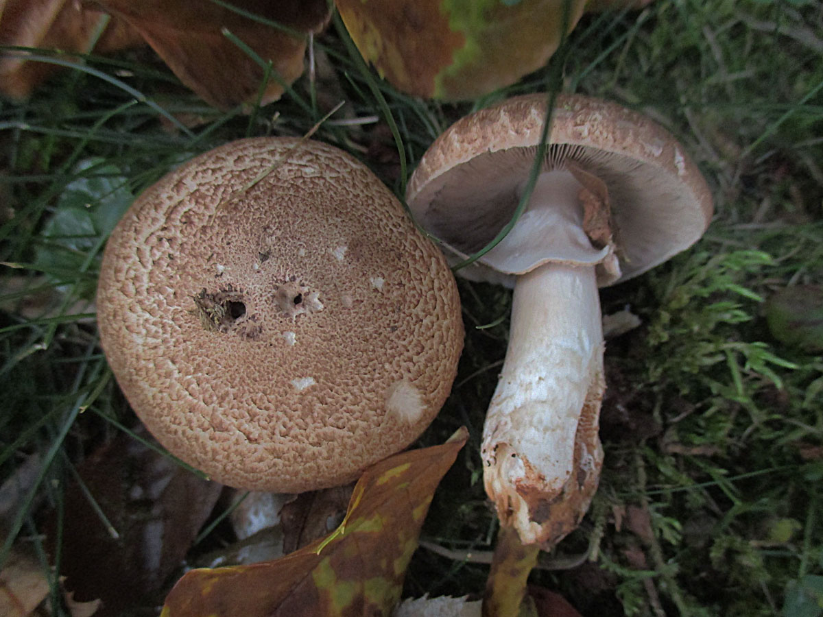 Der Flaschenstäubling schaut mir aber den Stacheln nach nach einer anderen Lycoperdonart aus, und auch der Speisetäubling schaut ned danach aus, auch wenn die Hutfarbe passt. Die Lamellen sollte weiß sein, der Stiel basal zugespitzt, und auch Rostflecken fehlen völlig.