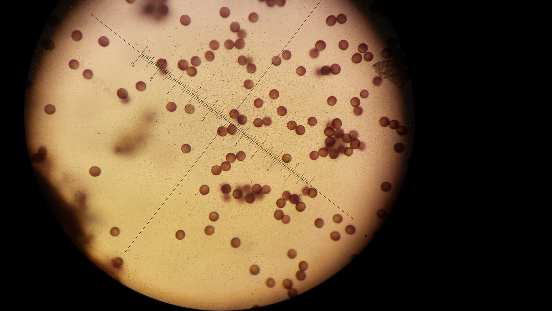 Es bleibt spannend - auf Kududung (Wort mit 3 u)wachsen flache Gebilde, ca, 1mm im Durchmesser, nicht ganz kreisrund ganz glatt, hellgrau, ganz entfernt an eine Schildlaus erinnernd (sorry schon spät, mir fällt nix besseres ein), am späten Abend so ein Ding unters Mikroskop gepackt - total seltsam, die grau Außenhaut platz mehr oder ab, und das Dingens ist mit braunen, kugelförmigen Sporen gefüllt, weder Asci noch Basidien erkennbar, Durchmesser ca. 12 µm, ich hab keine Ahnung, irgendeine meiner Synapsen flüstert was vom Myxomycet … Ich bin ratlos ..