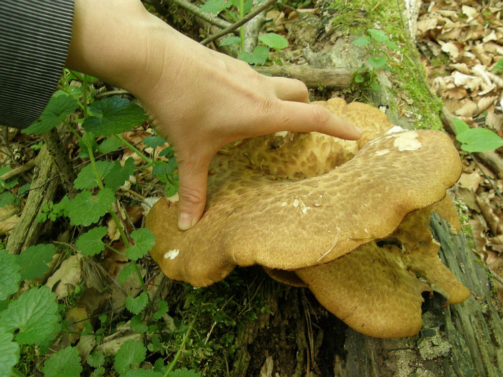 Noch ein Infos , in manche Beschreibungen P. tuberaster ist ein "viel kleiner" Pilz in vergleich mit P. squamosus mit Hut bis ca max, 7 - 9 cm , aber das ist falsch , es gibt viel größere Frk .