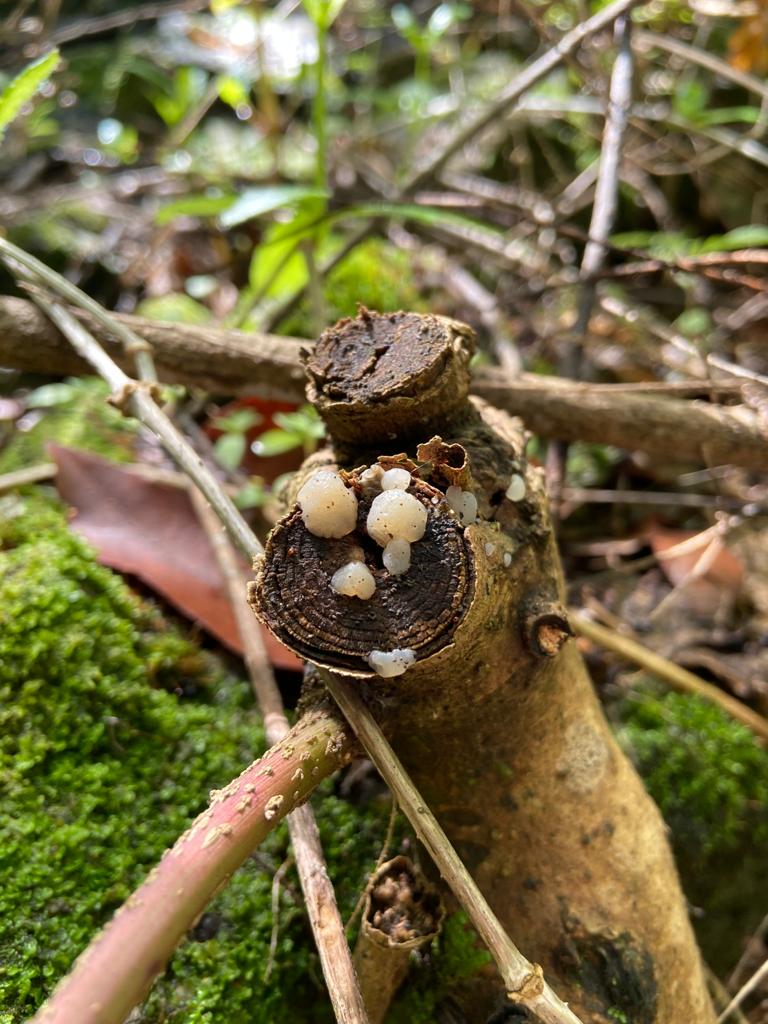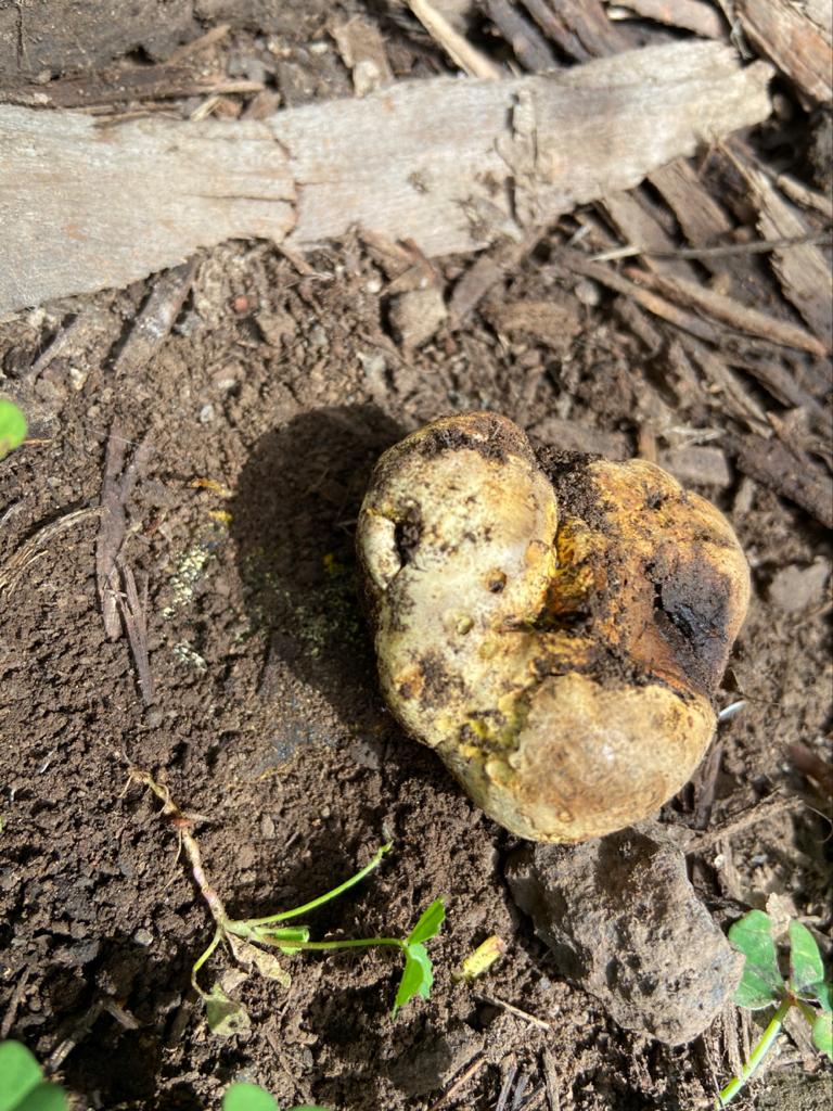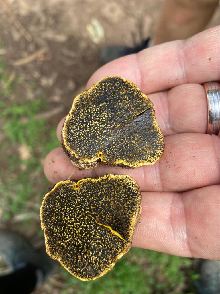 Gefunden bei Eukalyptus. Geruch moderat unauffällig. Schnittbild ist interessant und weist Richtung Schleimtrüffel.