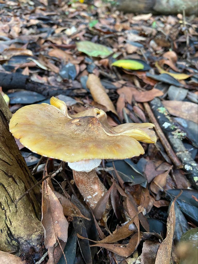 Auch auf den Kanaren gibt es Hallimasche. Könnte der Honiggelbe sein.