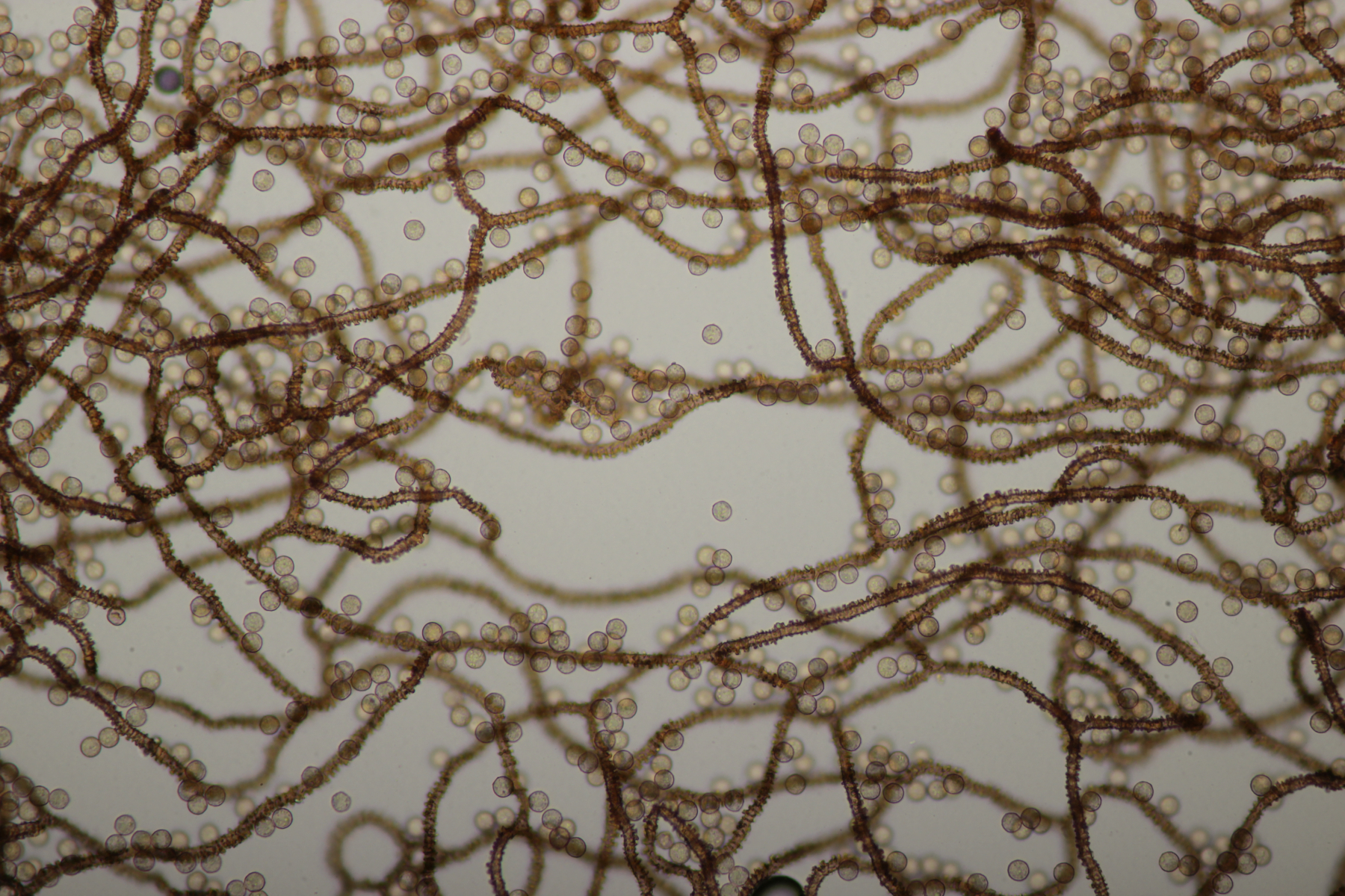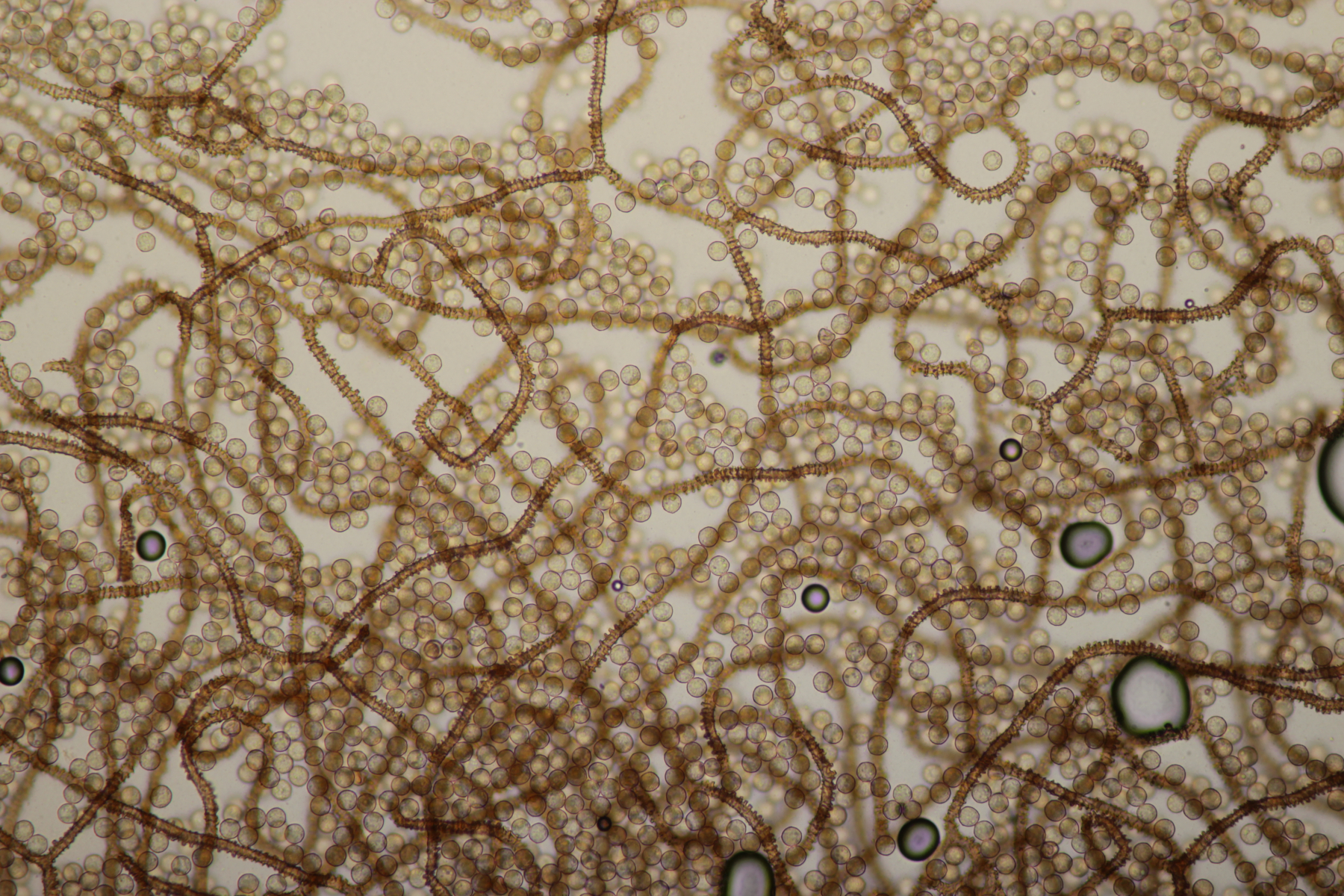 Hab ich vergessen: beim ersten mit den kleinen Knubbeln, da sind die ovalen Gebilde Fremdsporen, die nicht dazu gehören, würde ich denken.