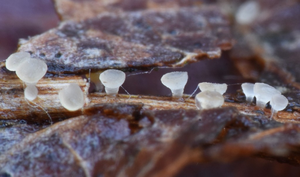 Überhaupt sind feucht liegende alte Blätter eine Fundgrube für Freunde kleiner Ascomyzeten. So fand Torsten an Blattresten, genauer gesagt an der Mittelrippe eines Quercus-robur-Blattes Allophyllaria nervicola (Foto: TR):