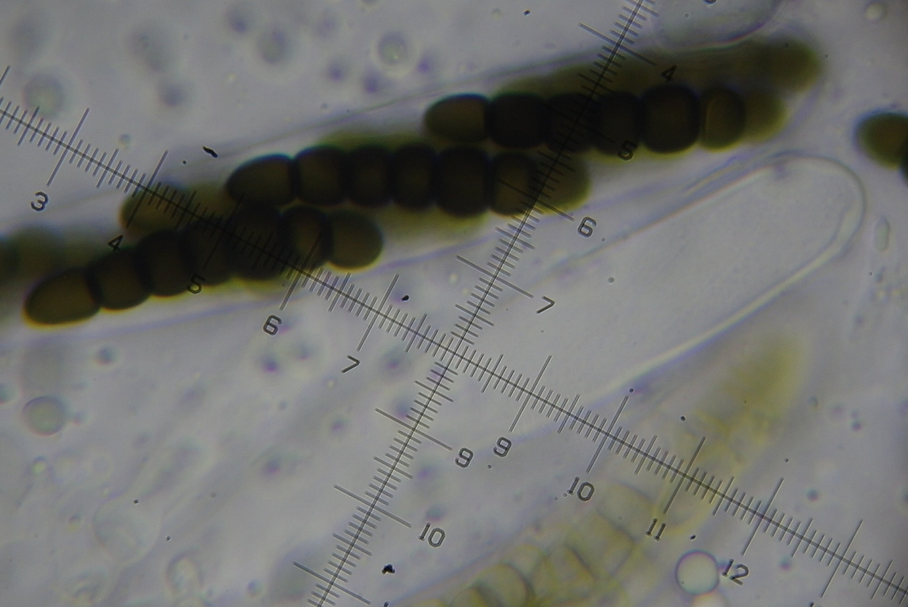 Die Sporen sind ziemlich am unteren Rand aber das kann daran liegen das in der ersten Probe noch keine reifen Sporen waren. Ich habe sie auf beiden Giraffenproben sie scheint also vlt eine Vorliebe dafür zu haben da beide Proben aus jeweils anderen Gebieten Namibias sind.
