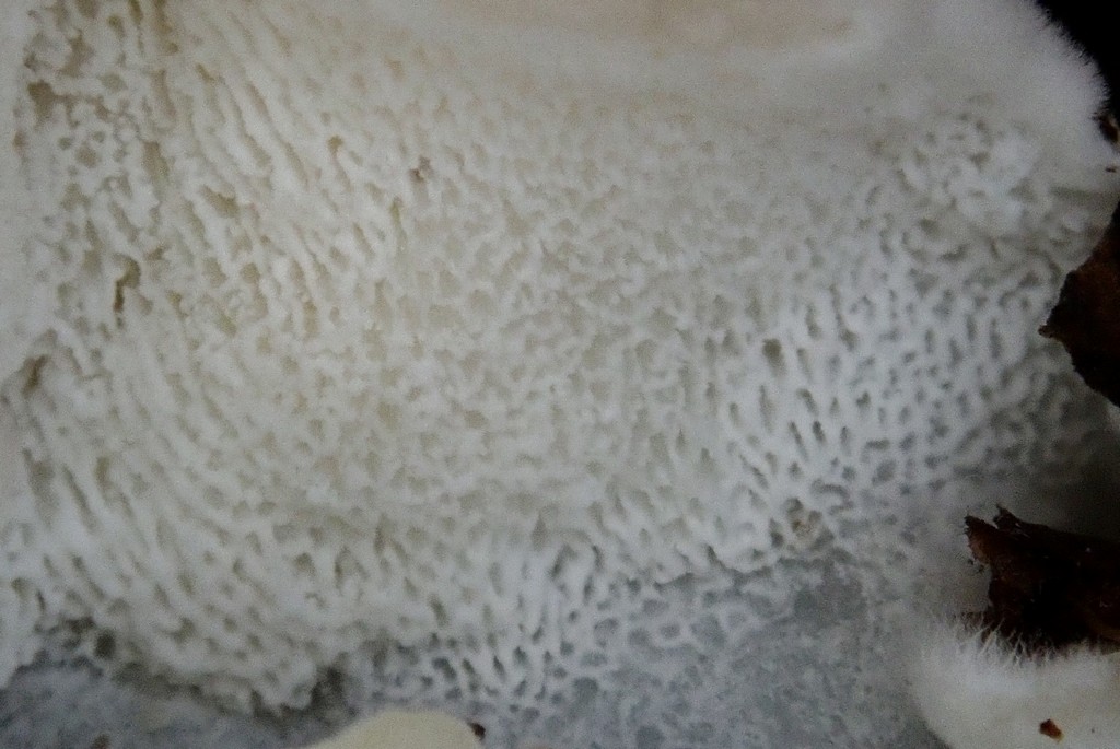 ich würde auf jeden Fall noch mal genauer reingucken in den Fund, vor allem auch um ein paar Sporen und am besten auch die inkrustierten Hyphen in der Röhrentrama festzustellen. Weil weißliche, pileate Porlinge an Nadelholz gibt's halt schon eine ganze Menge.