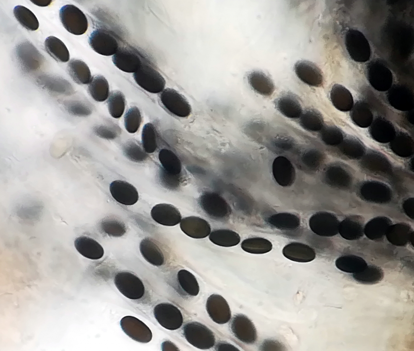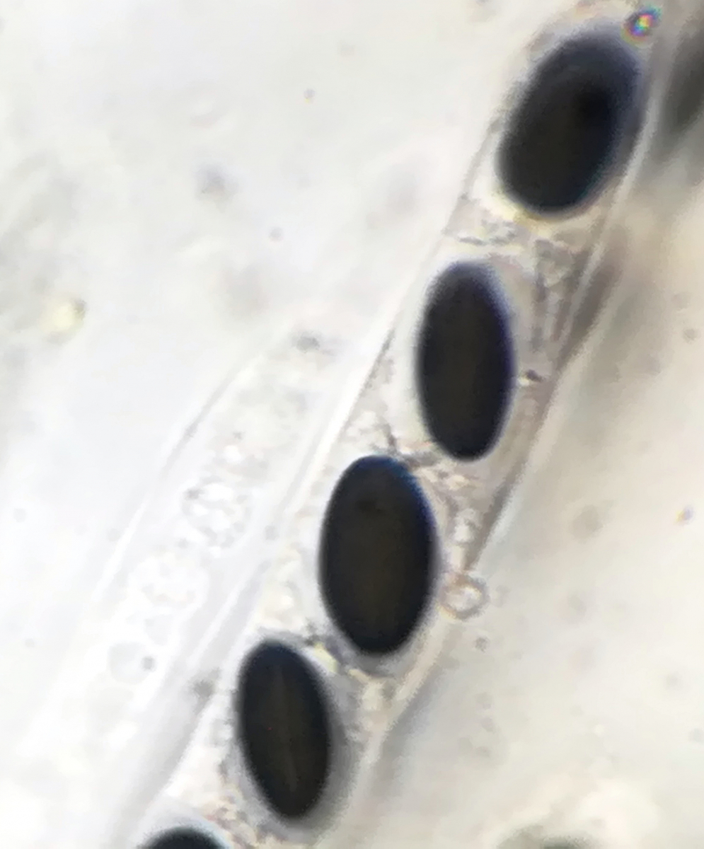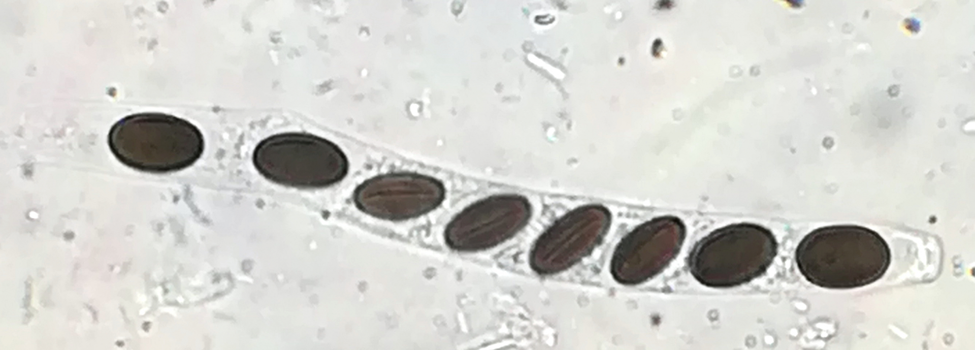 - Die Asci sind 8-sporig, wobei die Abstände zwischen den Sporen recht groß sind. Die Asci sind uniseriat, die Sporen sind tendentiell eher in Längsrichtung ausgerichtet
