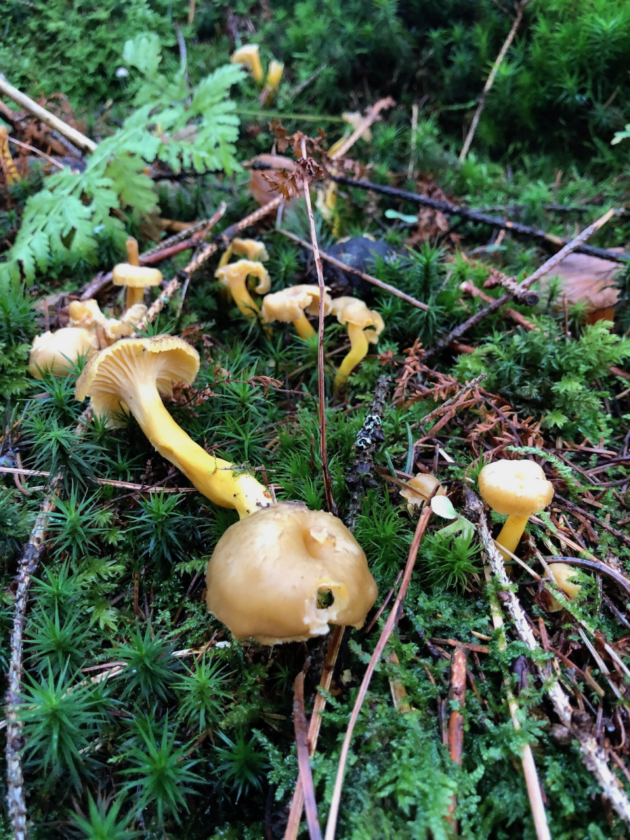 Der Pilzspürhund zeigte unverzüglich ein größeres Vorkommen Trompetenpfifferlinge an.