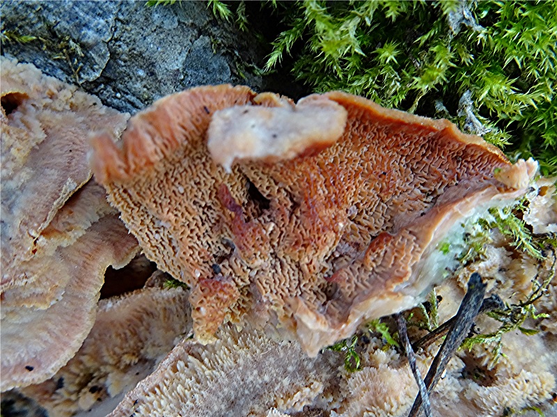 Das Schwierige dabei: Was besser Passendes fällt mir ja auch nicht ein. Also anders ausgedrückt: Die Fruchtkörper kommen mir einfach komisch vor und weichen in erwähnten Punkten von den Kollektionen von Phlebia tremellosa ab, die ich bisher beobachtet habe (so irgendwas im 3stelligen Bereich...).