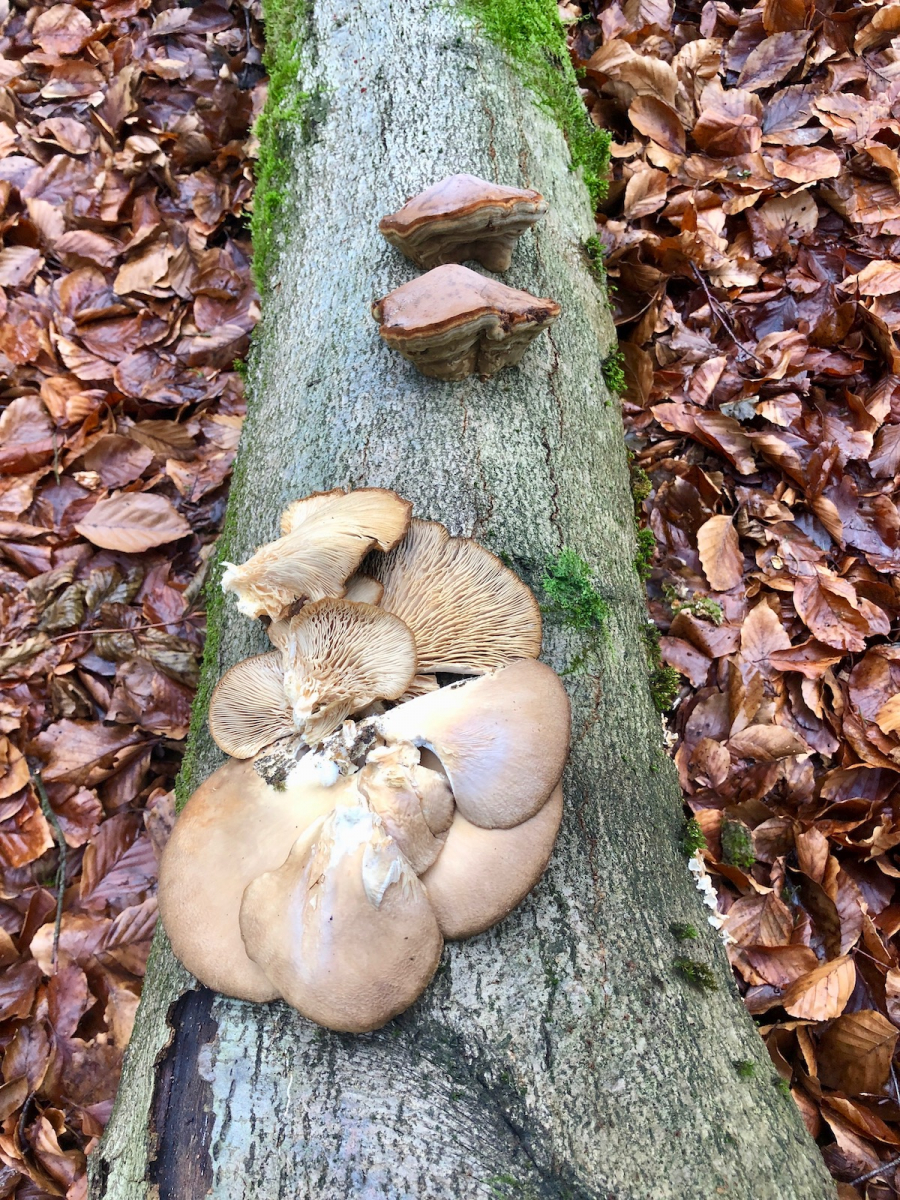 Der ganze Baum war voller solcher Zunderschwämme im Umbau, ein paar sehr späte Austernseitlinge hatte er auch.