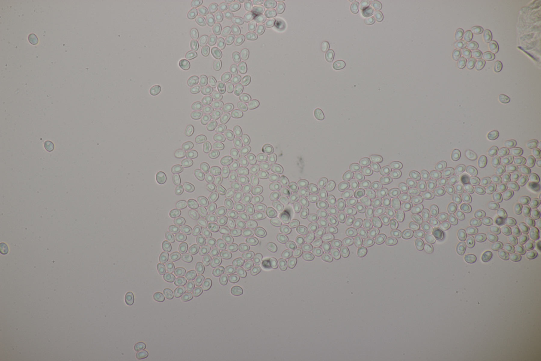 5. Auf Erle. Sporengröße (5.1+-0.3) µm x (3.5+-0.3) µm, Q=1.5+-0.1