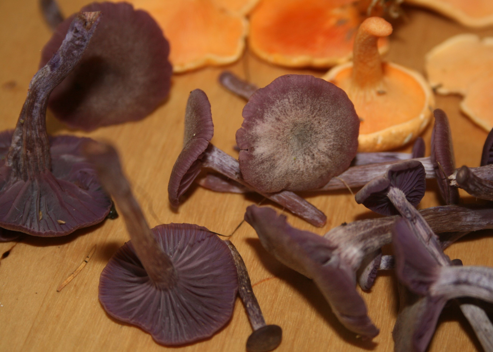 Die ersten sind Falsche Pfifferlinge und die zweiten Violette Lacktrichterlinge.