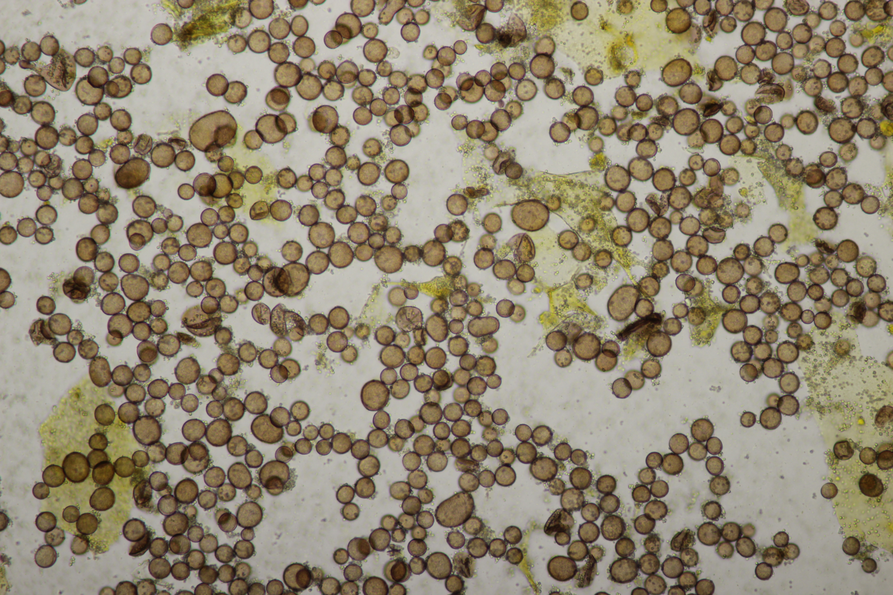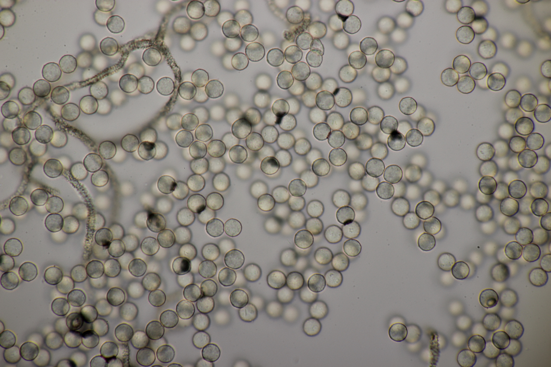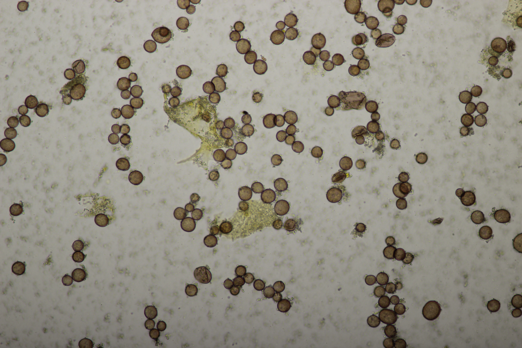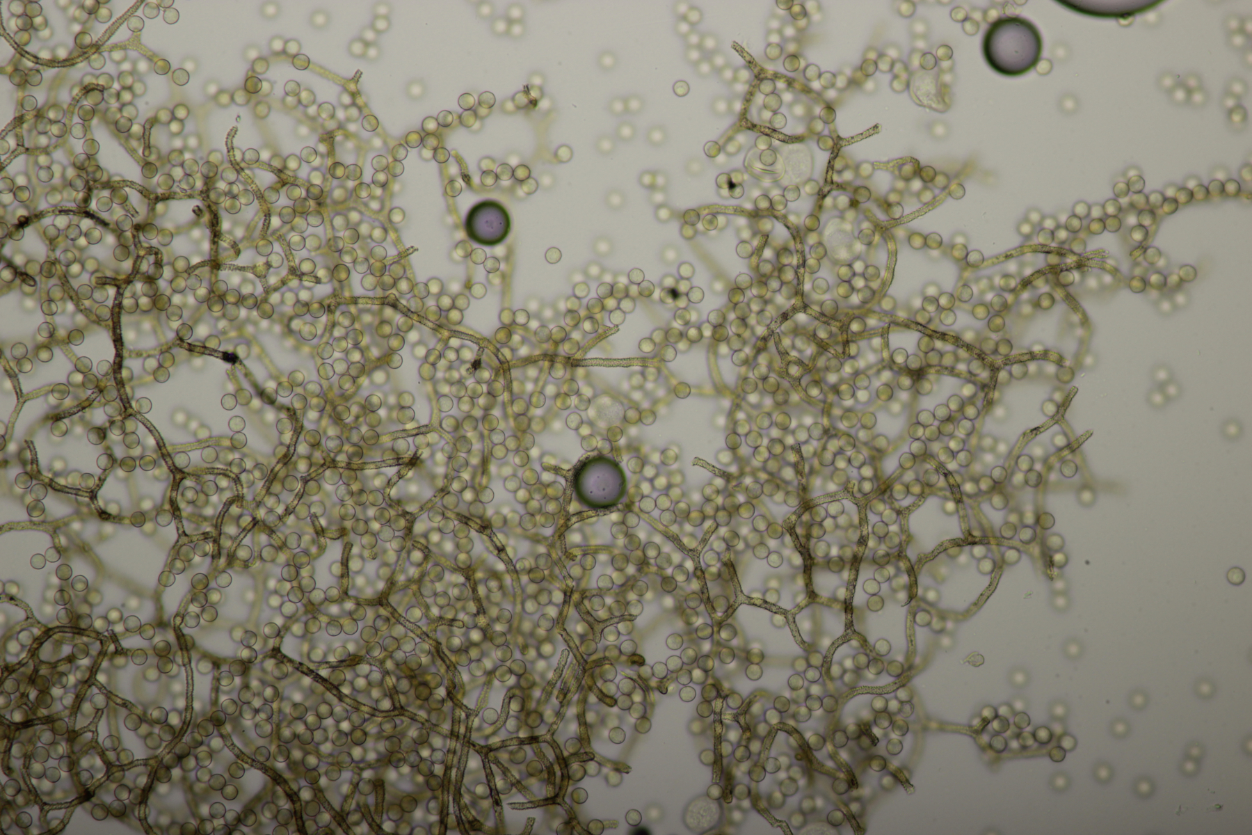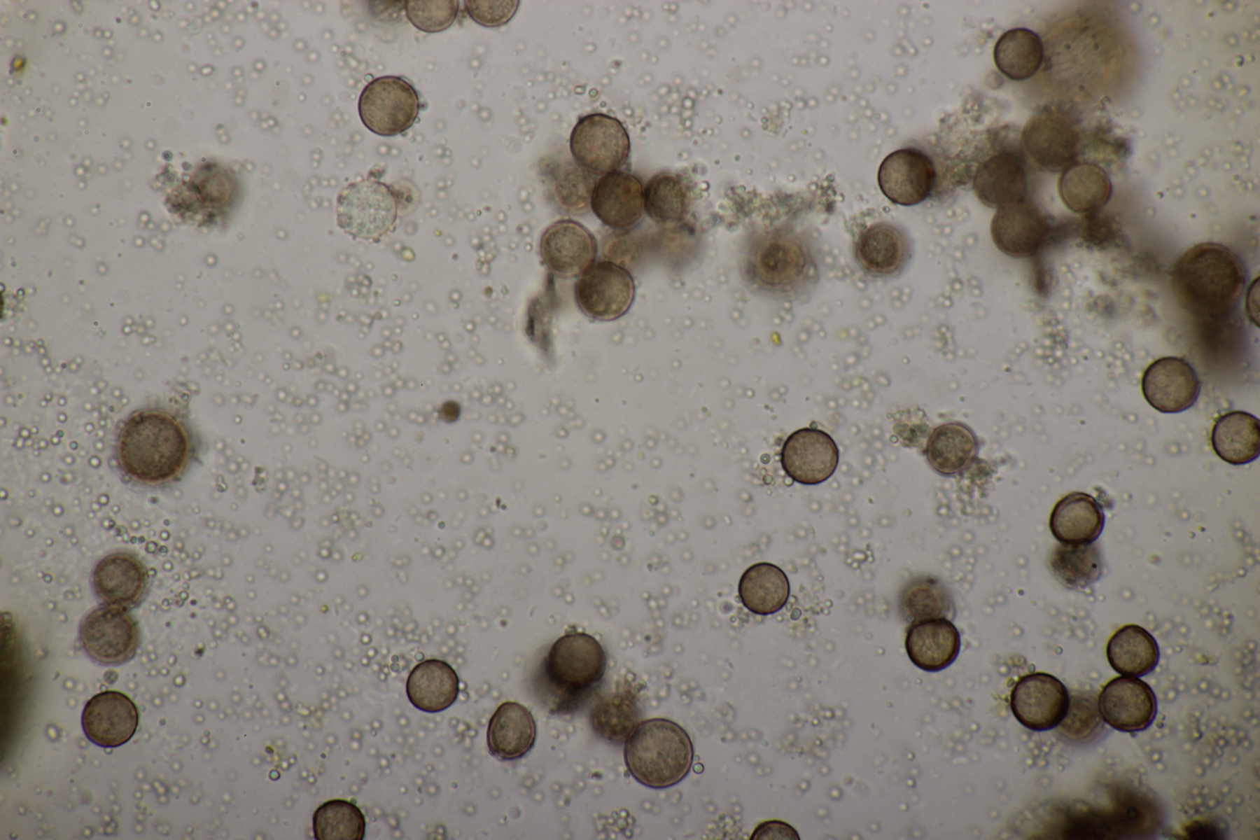 Bei den Mikrofotos des Craterium sieht man das die Fruchtkörper etwas gestört sind, da sich sehr uneinheitlich große Sporen ausgebildet haben.